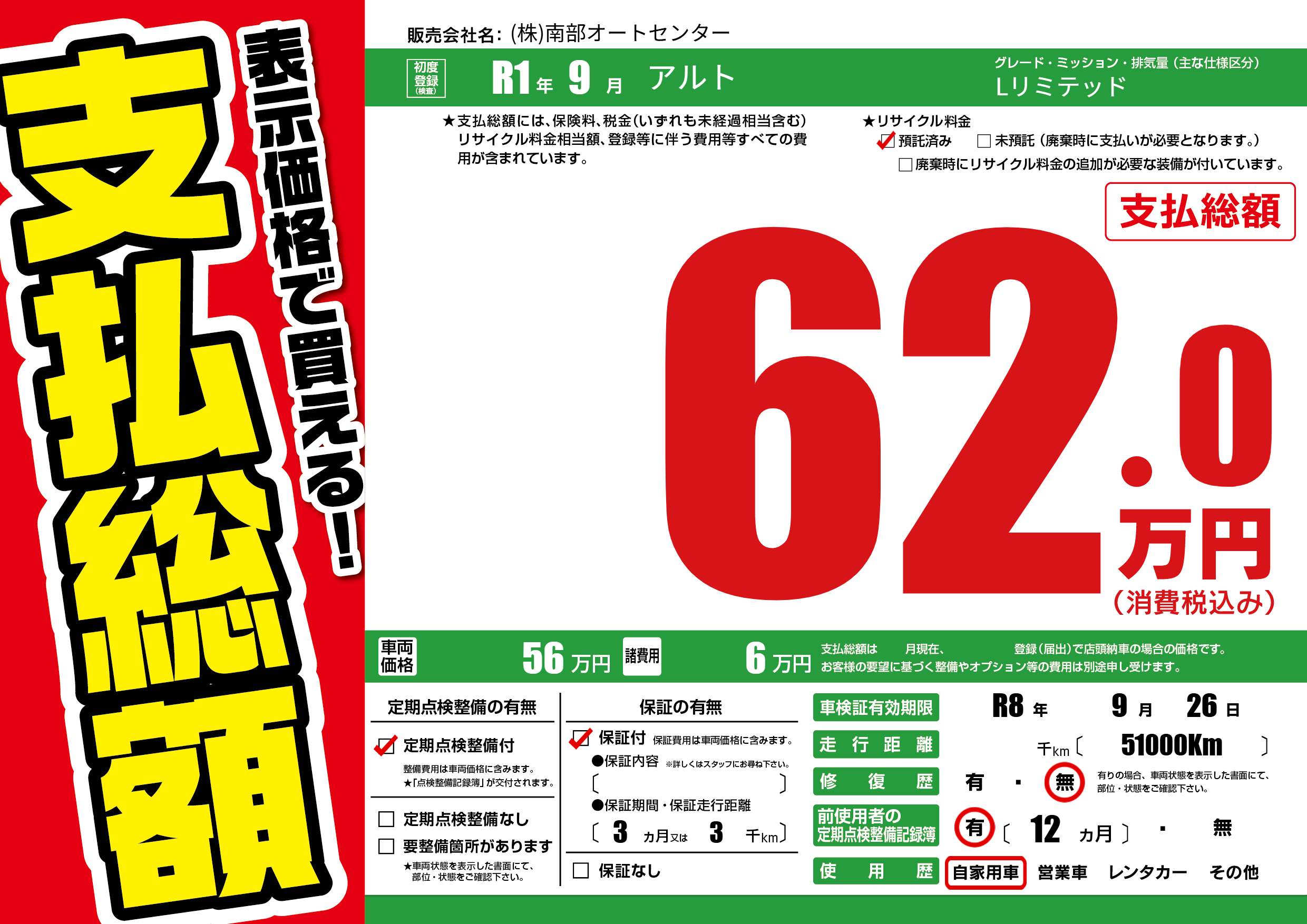 なし | 車検制限 | R8年9月26月 |