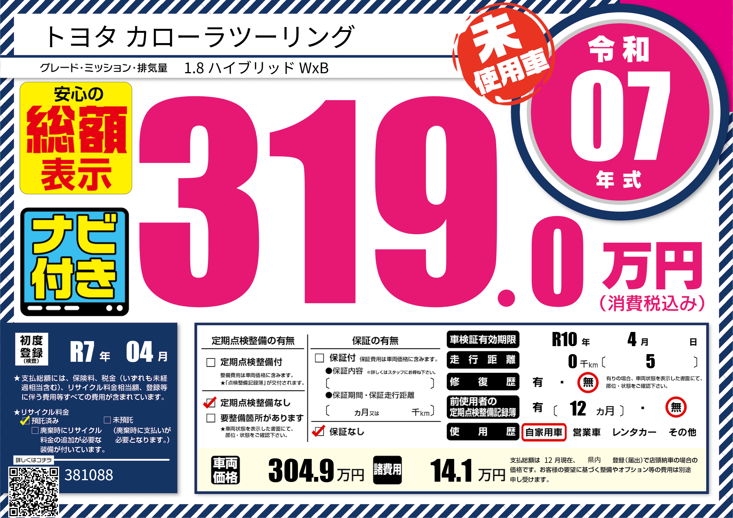| 走行キロ | - | 初年度登録 | R7年04月 |