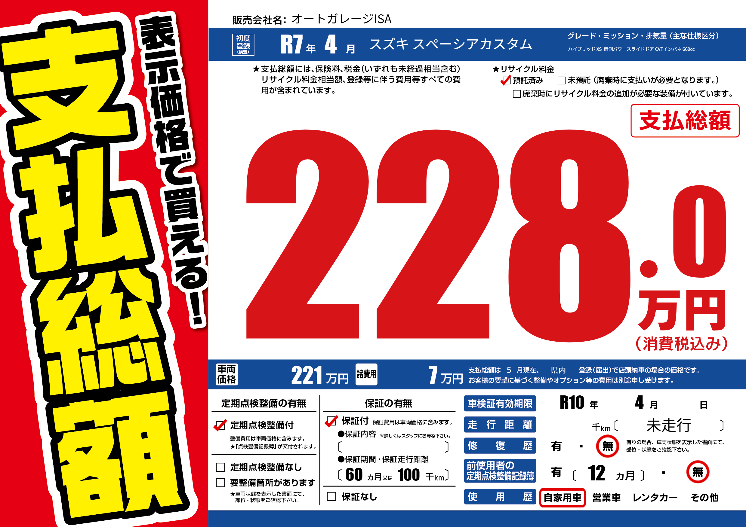 | 走行キロ | - | 初年度登録 | R7年4月 |