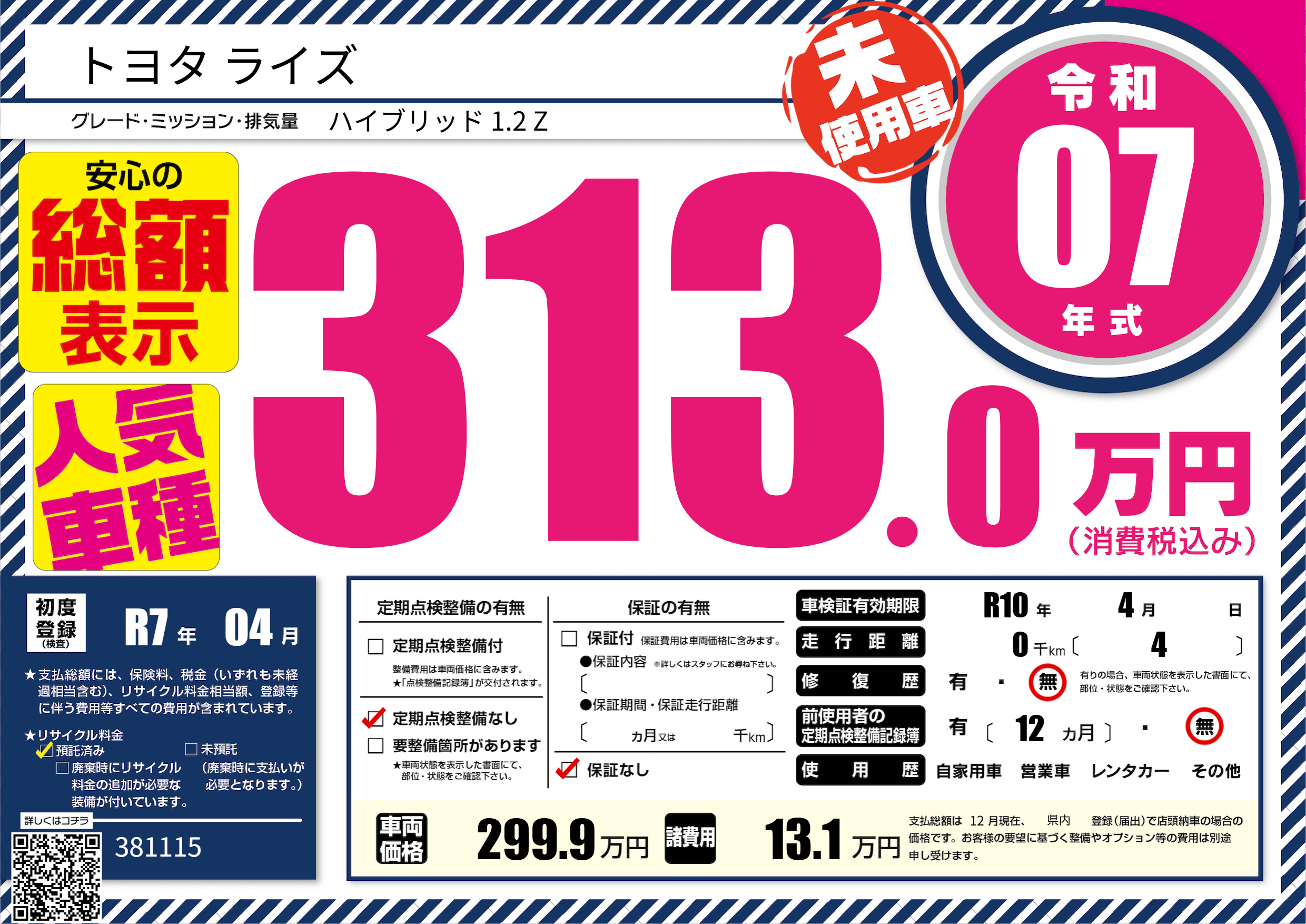 | 走行キロ | - | 初年度登録 | R7年04月 |