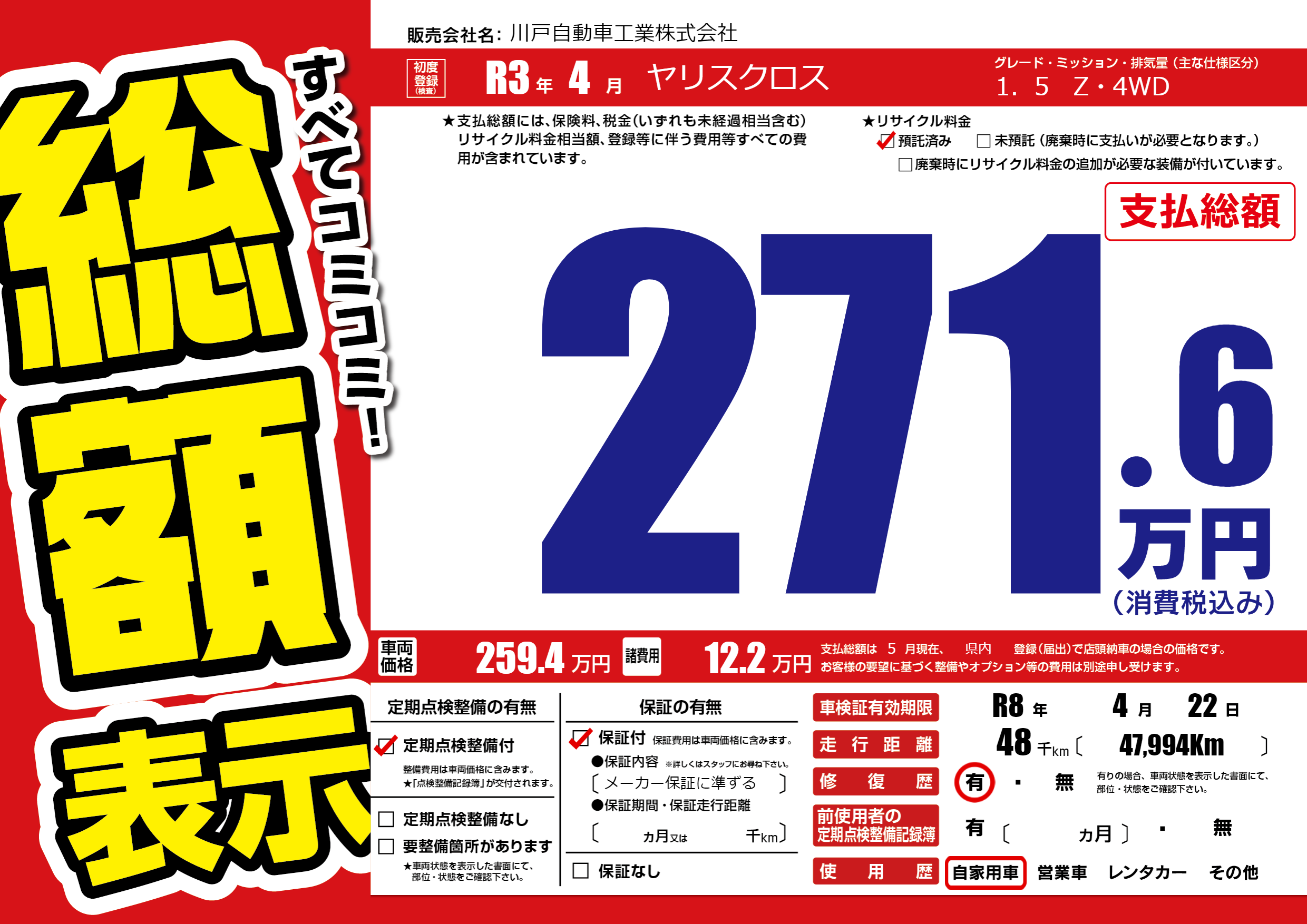| 車検制限 | R8年 4月 22日 | ||