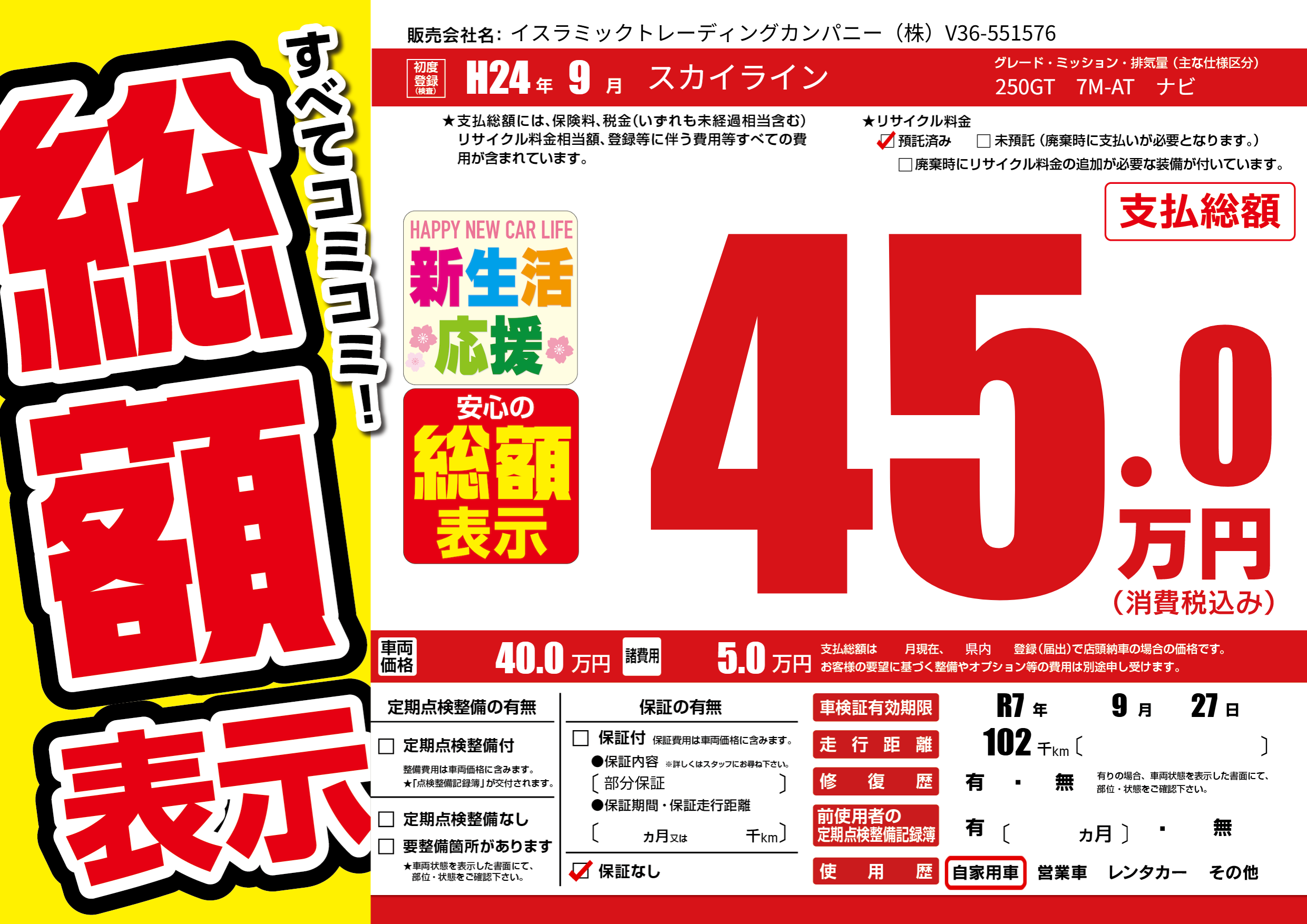 なし | 車検制限 | R7年9月27月 |