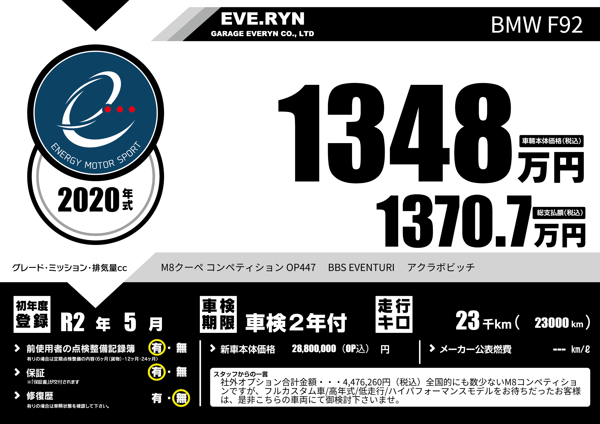 M8クーペ コンペティション OP447 BBS EVENTURI アクラボビッチ |