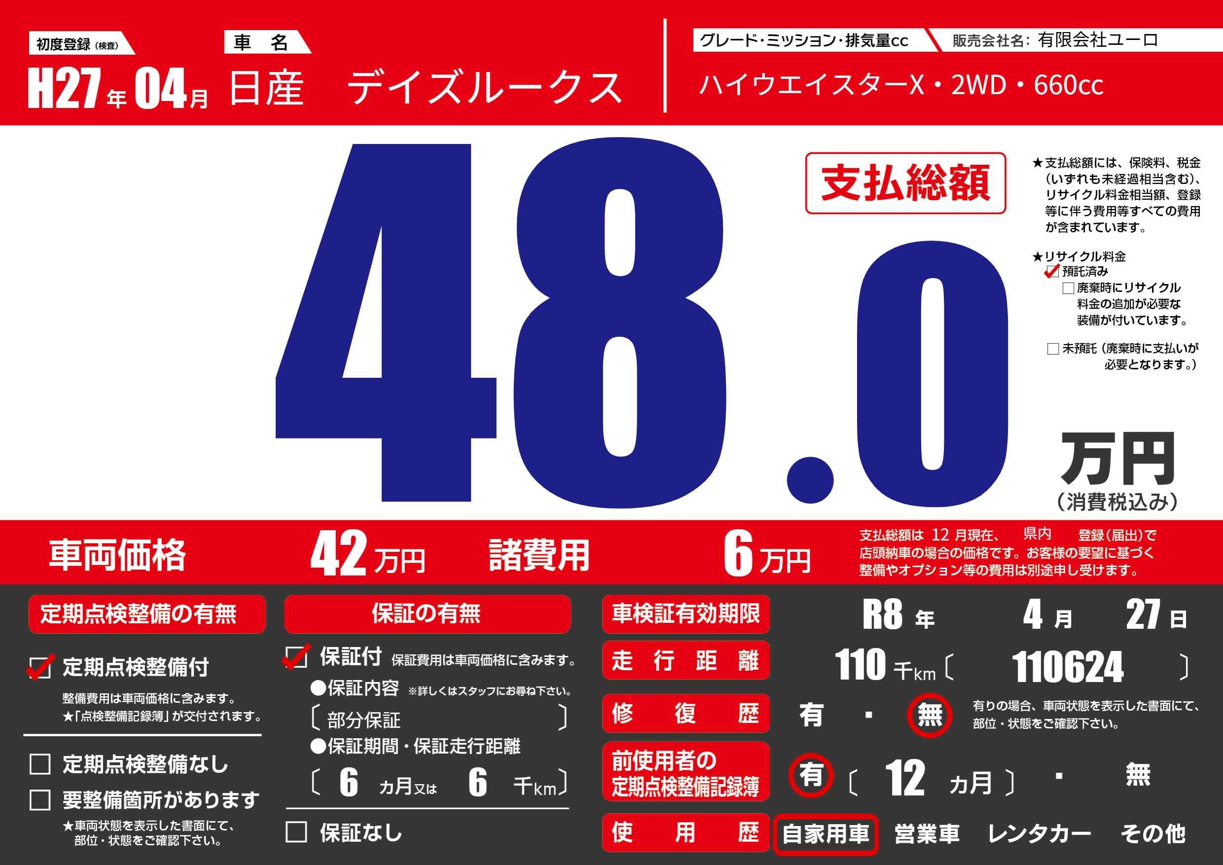 なし | 車検制限 | R8年4月27月 |