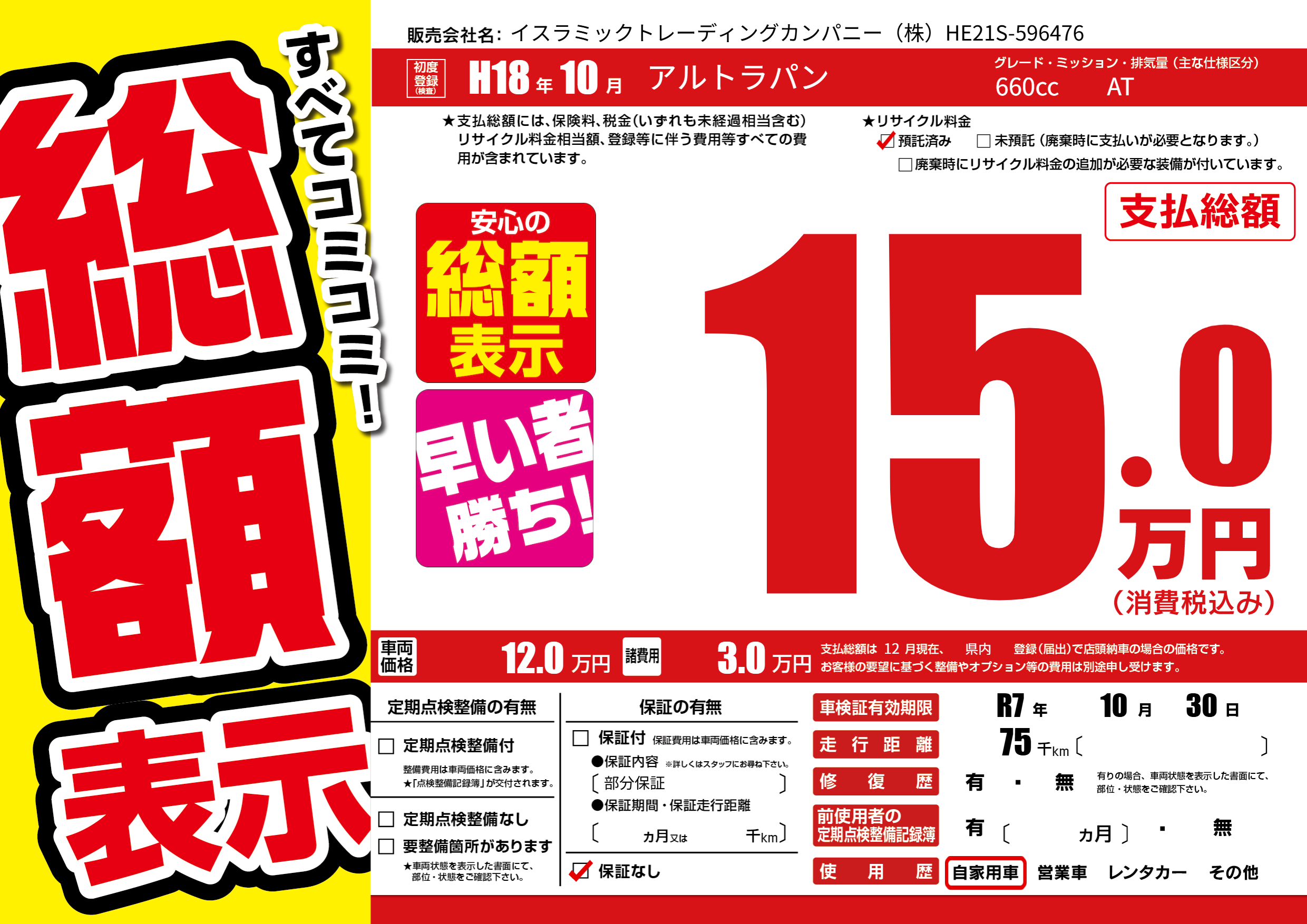 | 走行キロ | 7.5万km | ||