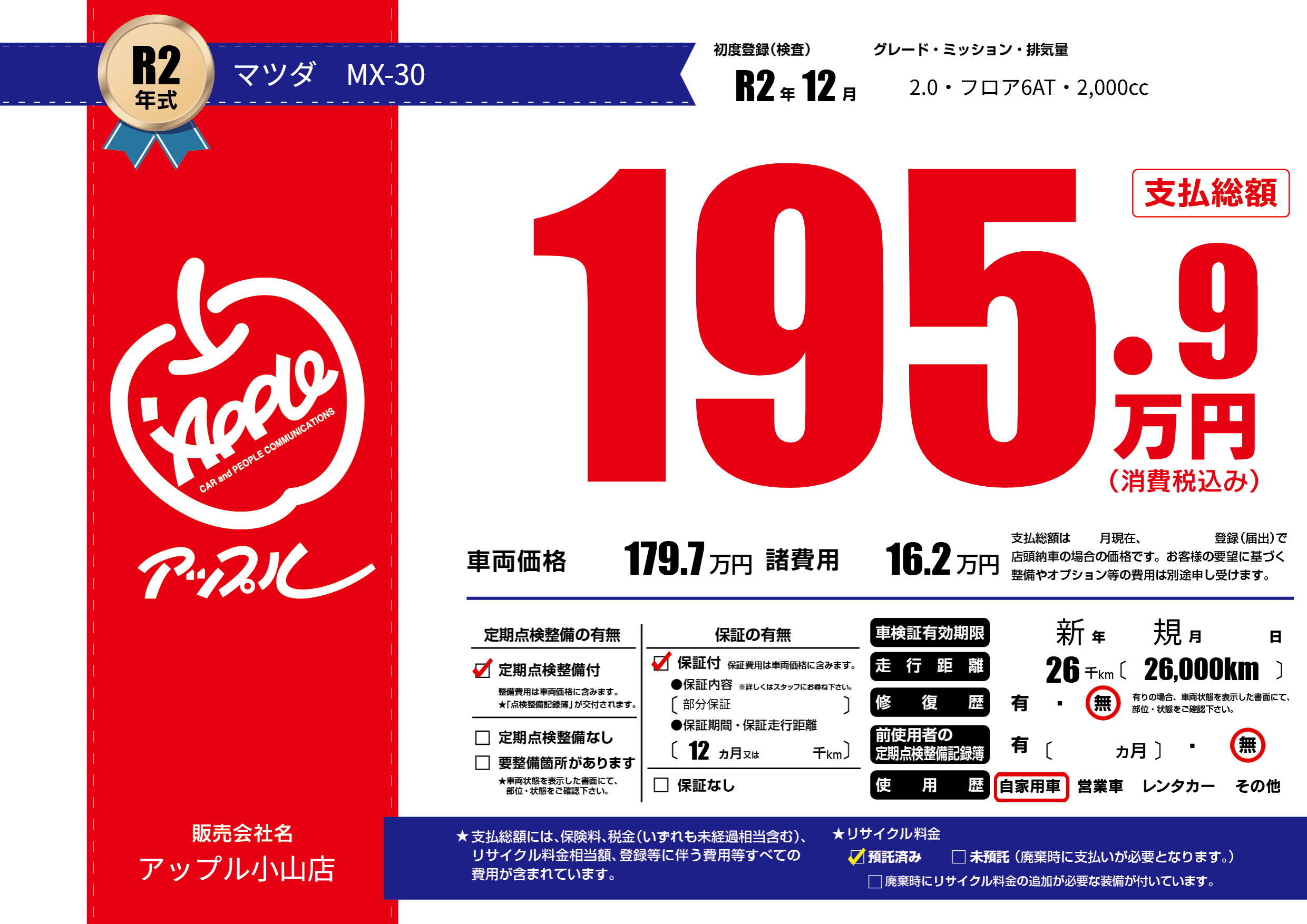 | 走行キロ | 2.6万km | ||