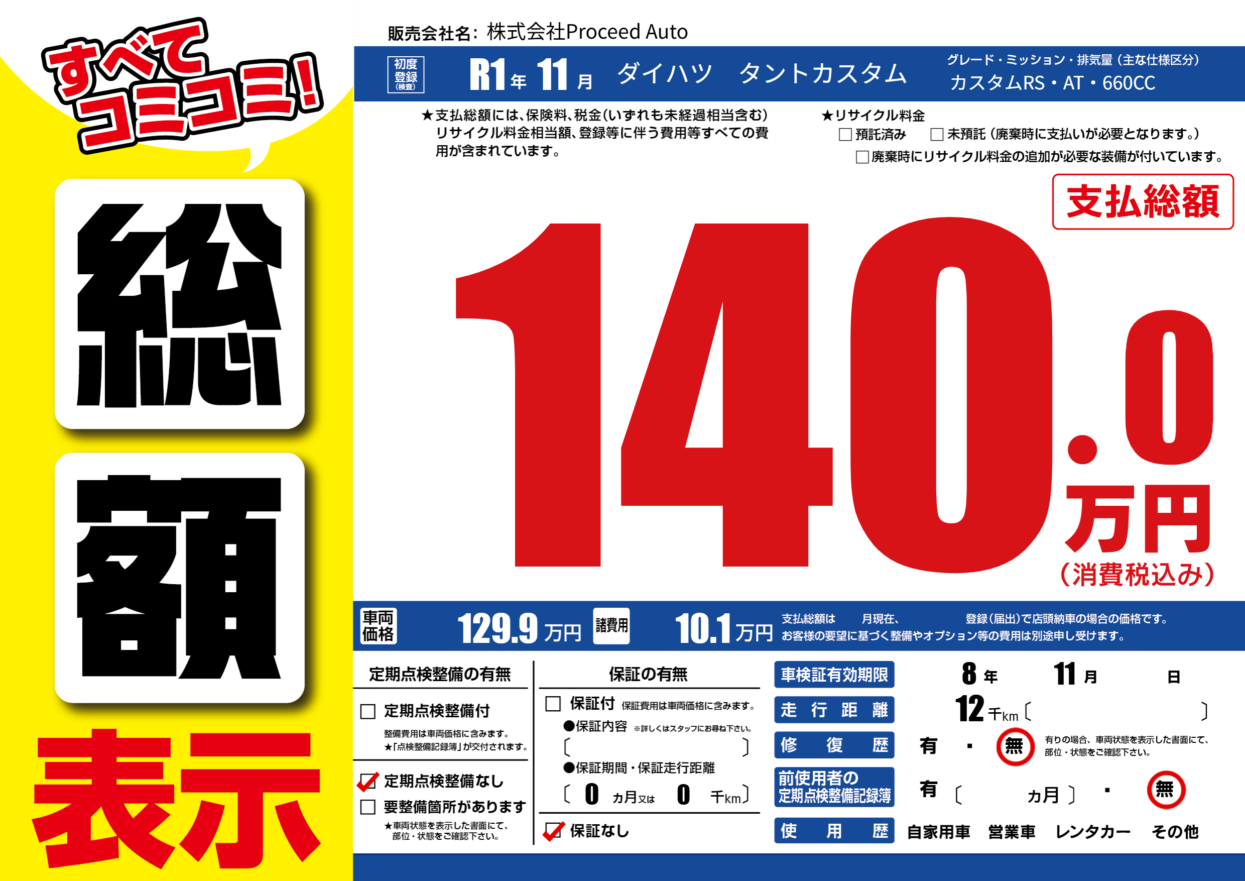 なし | リサイクル預託金相当額 | ( 0円)が別途必要 |