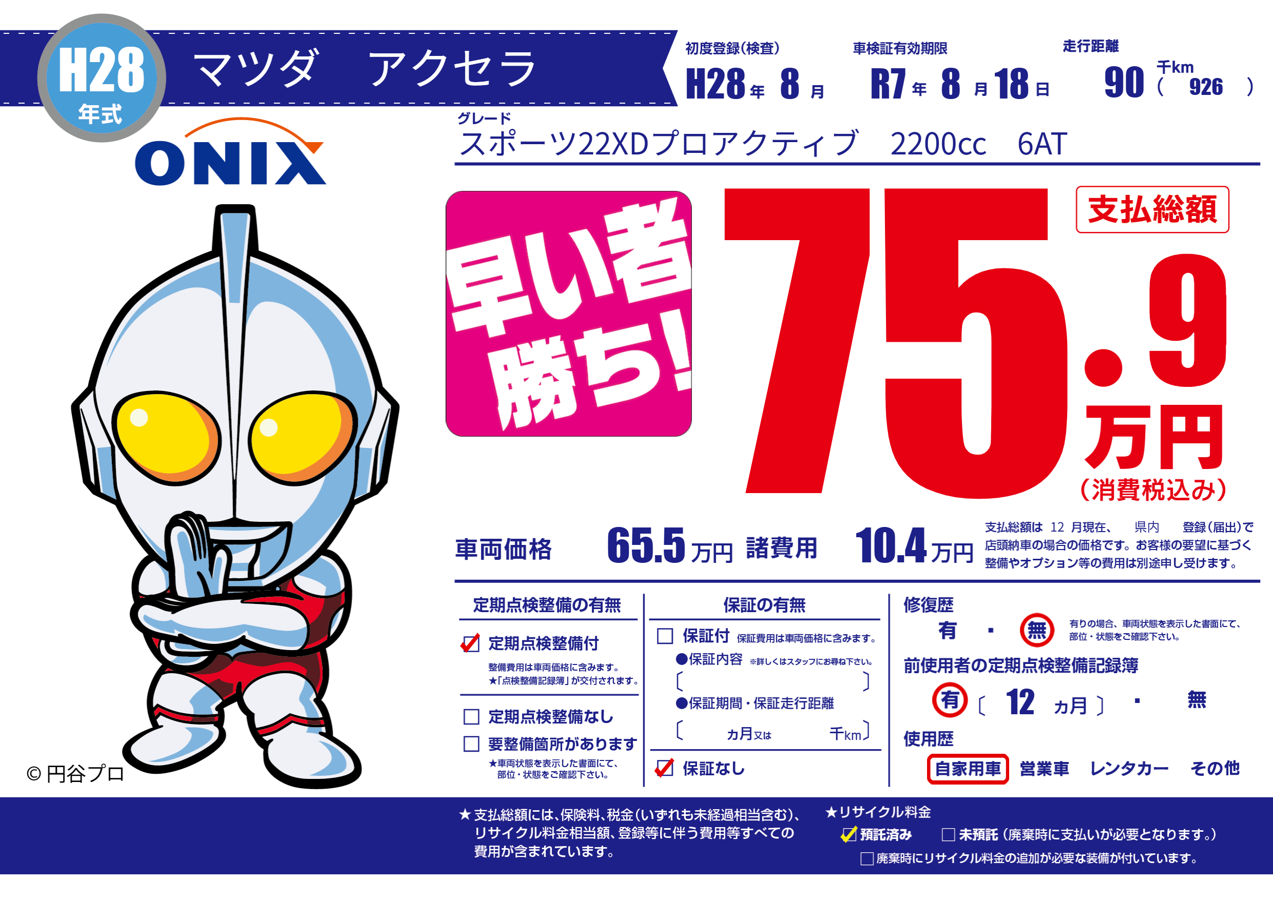 | 車名 | マツダ アクセラ | グレード ミッション 排気量 |