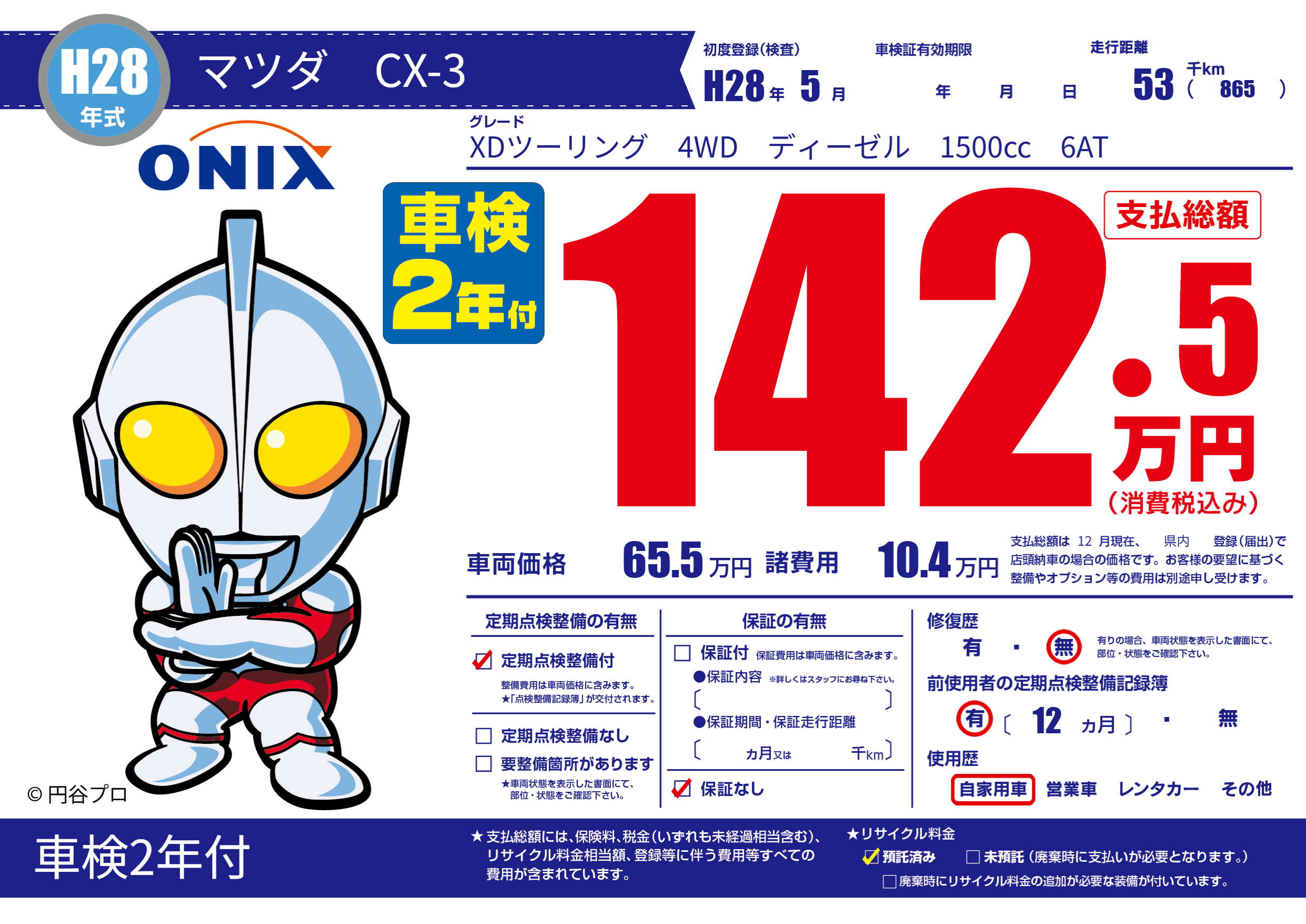 | 車名 | マツダ CX-3 | グレード ミッション 排気量 |