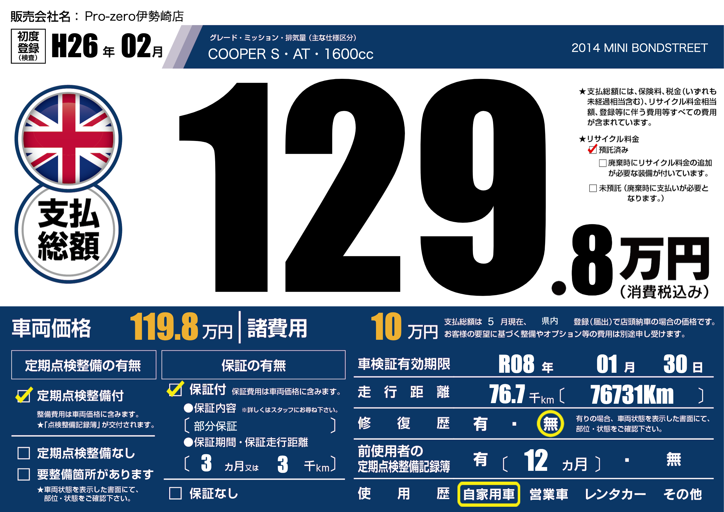 | 走行キロ | 7.6万km | ||