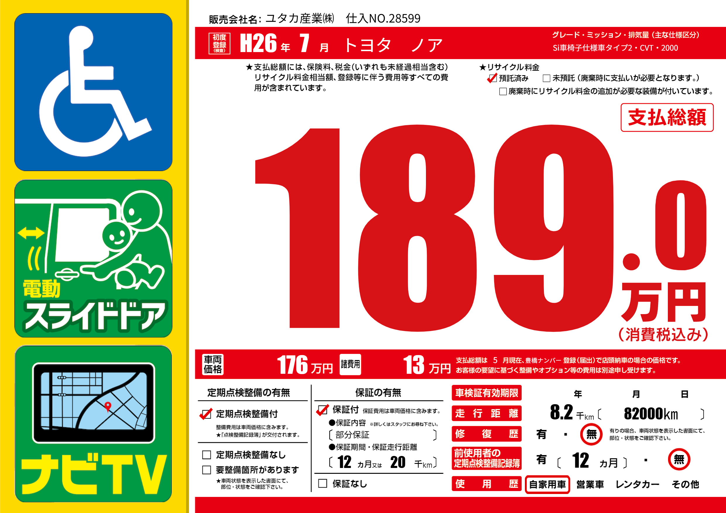 | 車名 | トヨタ ノア | グレード ミッション 排気量 |