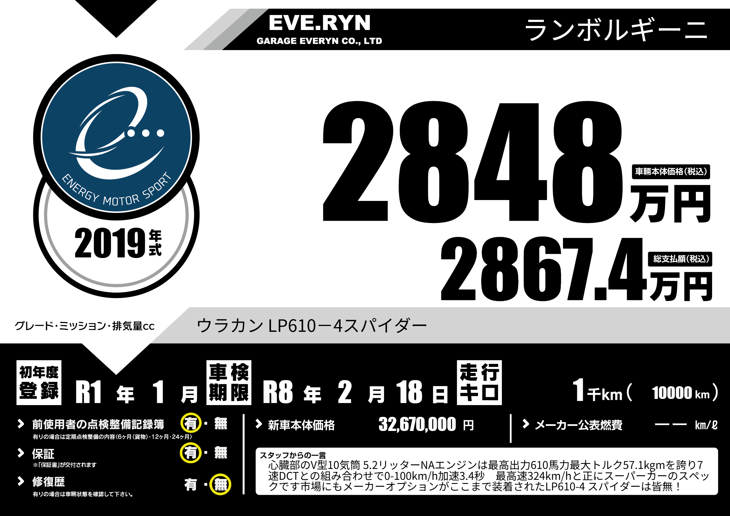 | 車名 | ランボルギーニ | グレード ミッション 排気量 |
