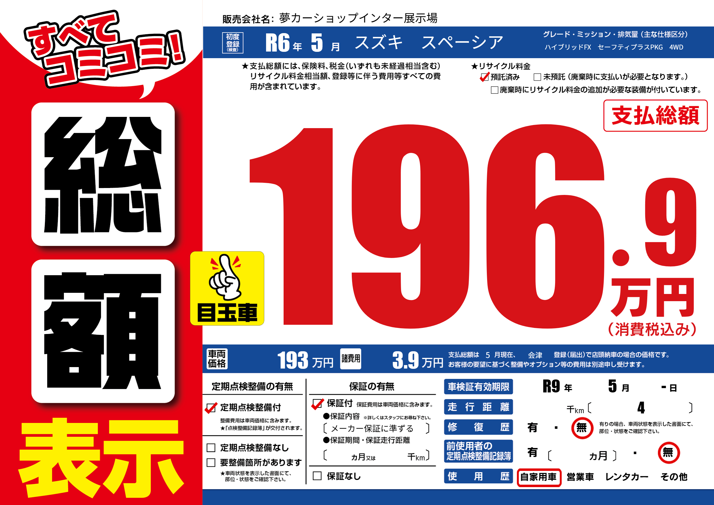 | 車名 | スズキ スペーシア | グレード ミッション 排気量 |