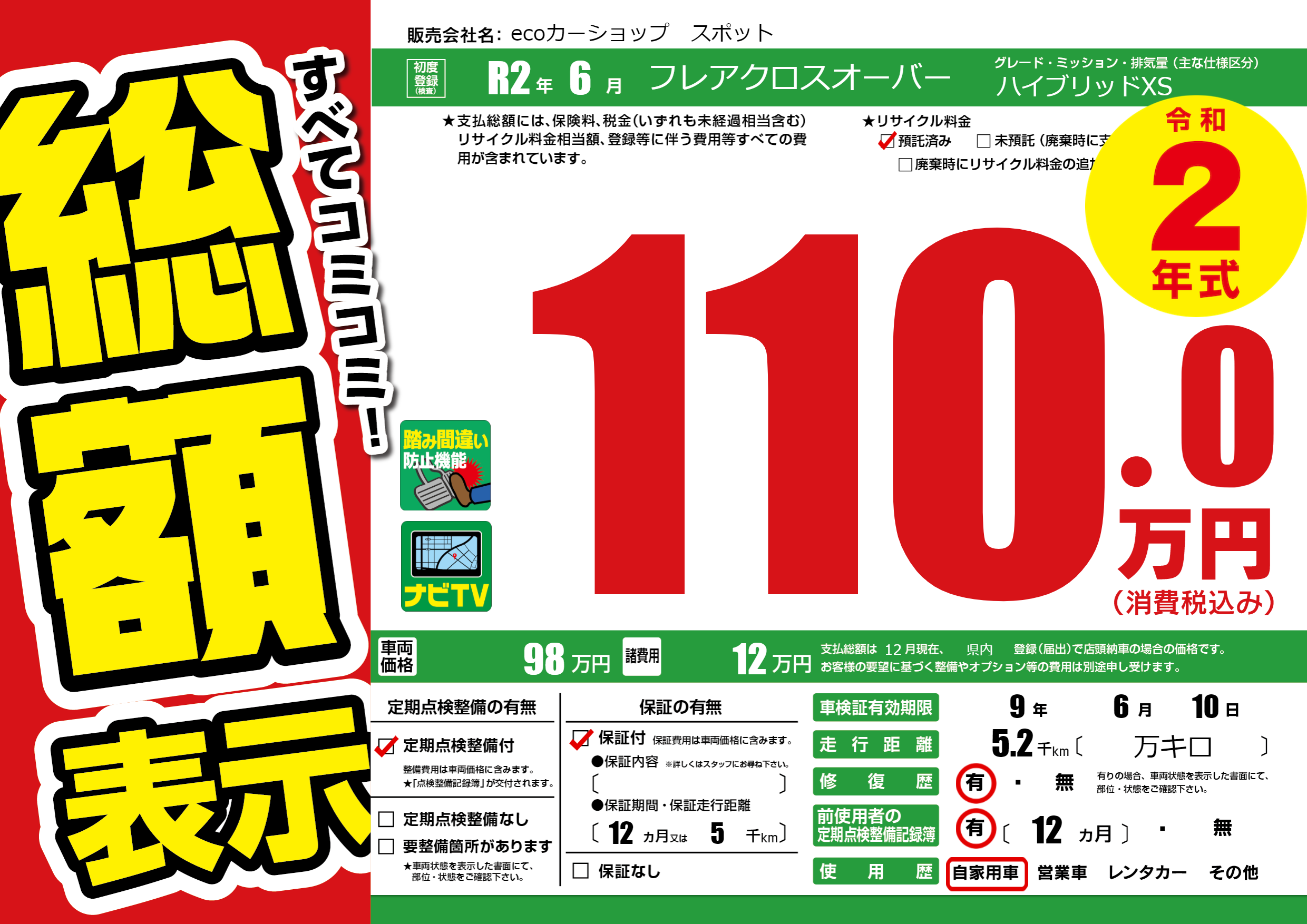 | 車名 | フレアクロスオーバー | グレード ミッション 排気量 |
