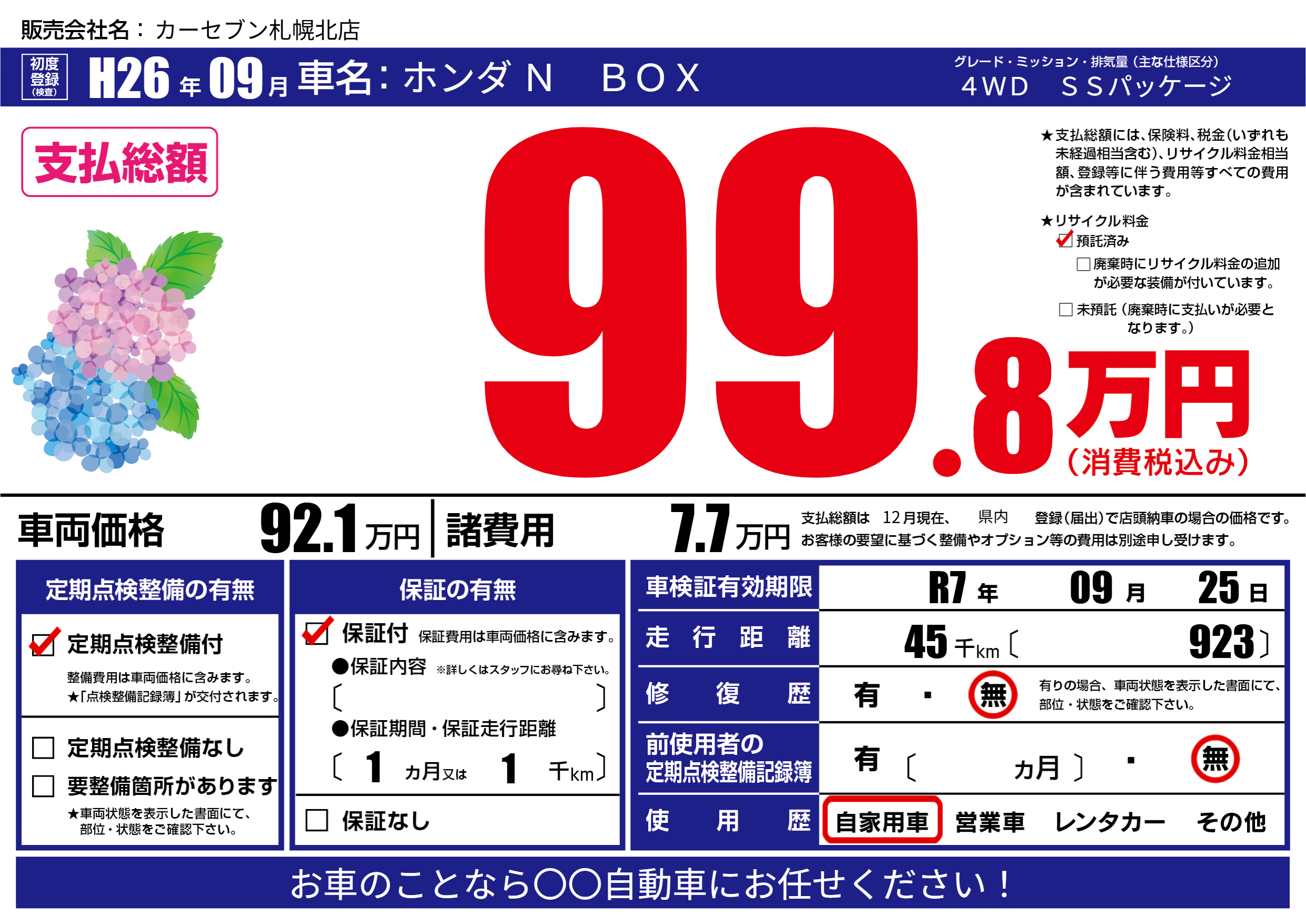 なし | 車検制限 | R7年09月25月 |