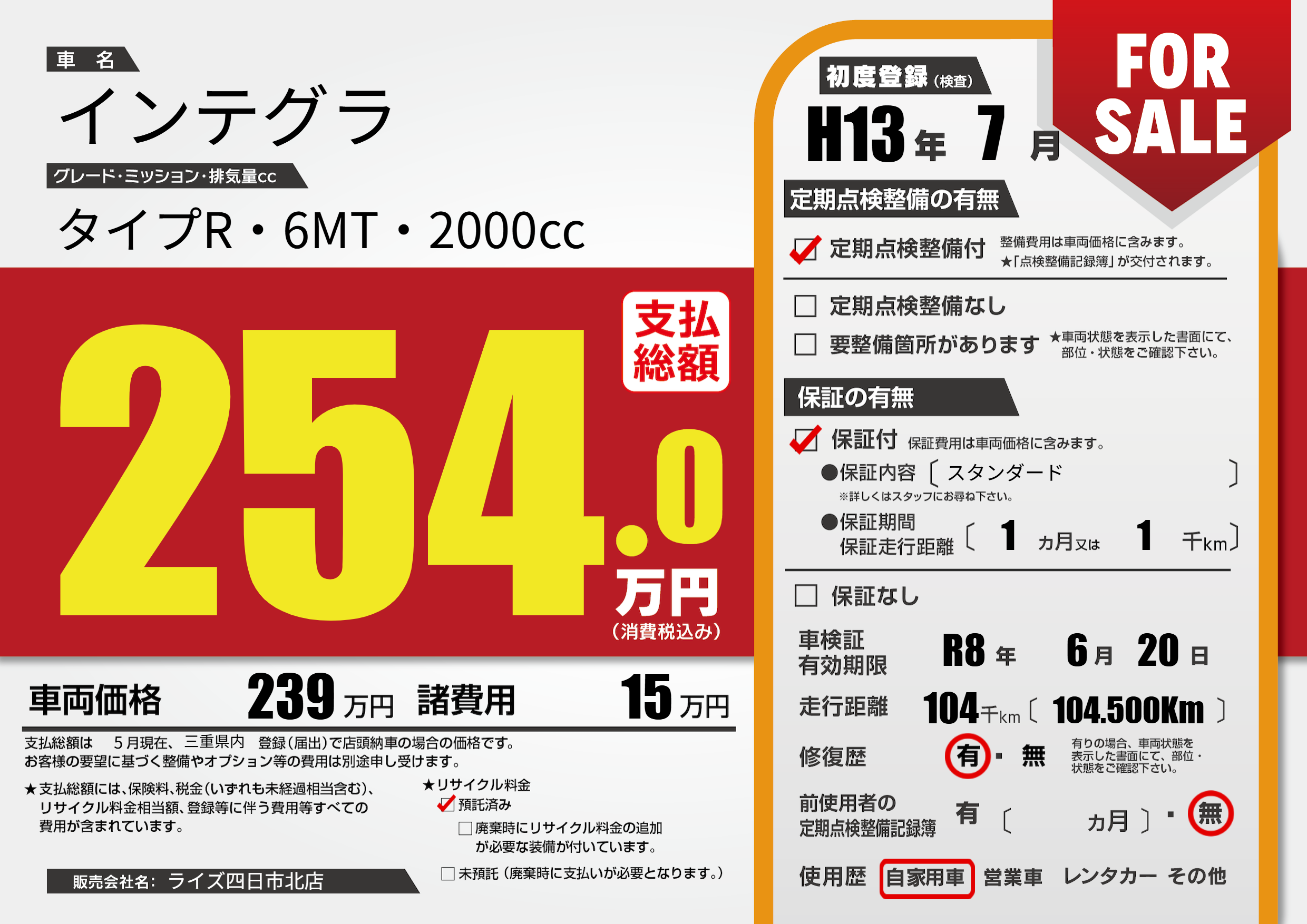 なし | 車検制限 | R8年6月20月 |