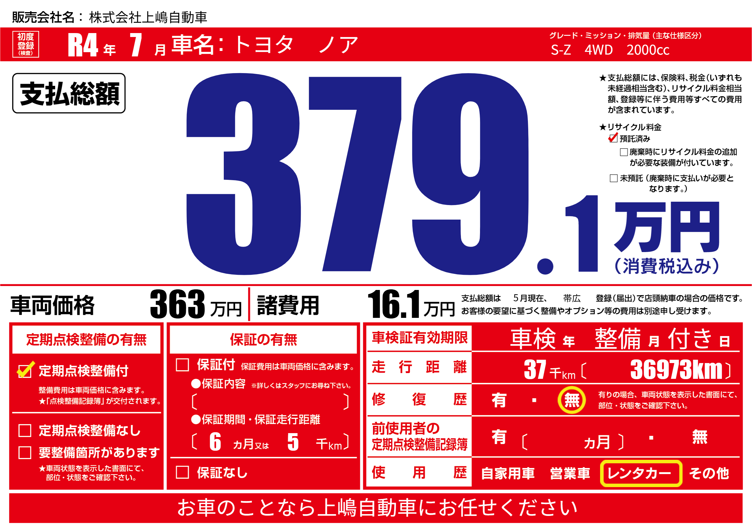 定期点検整備 | 定期点検整備あり |