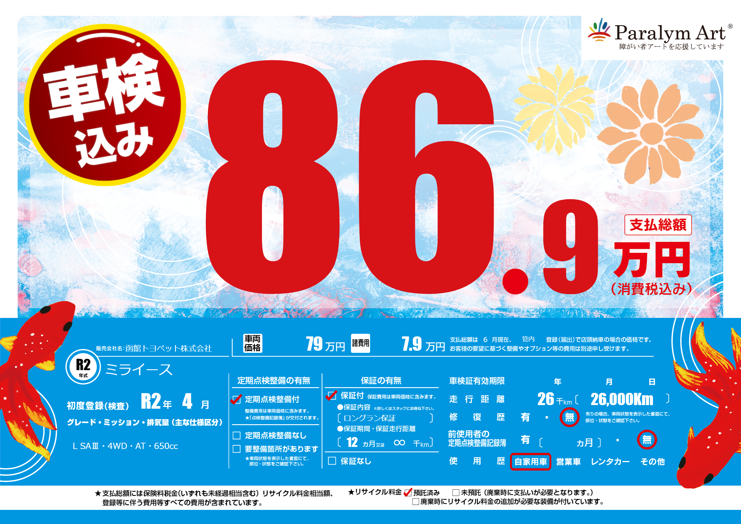 | 走行キロ | 2.6万km | 初年度登録 | R2年4月 |