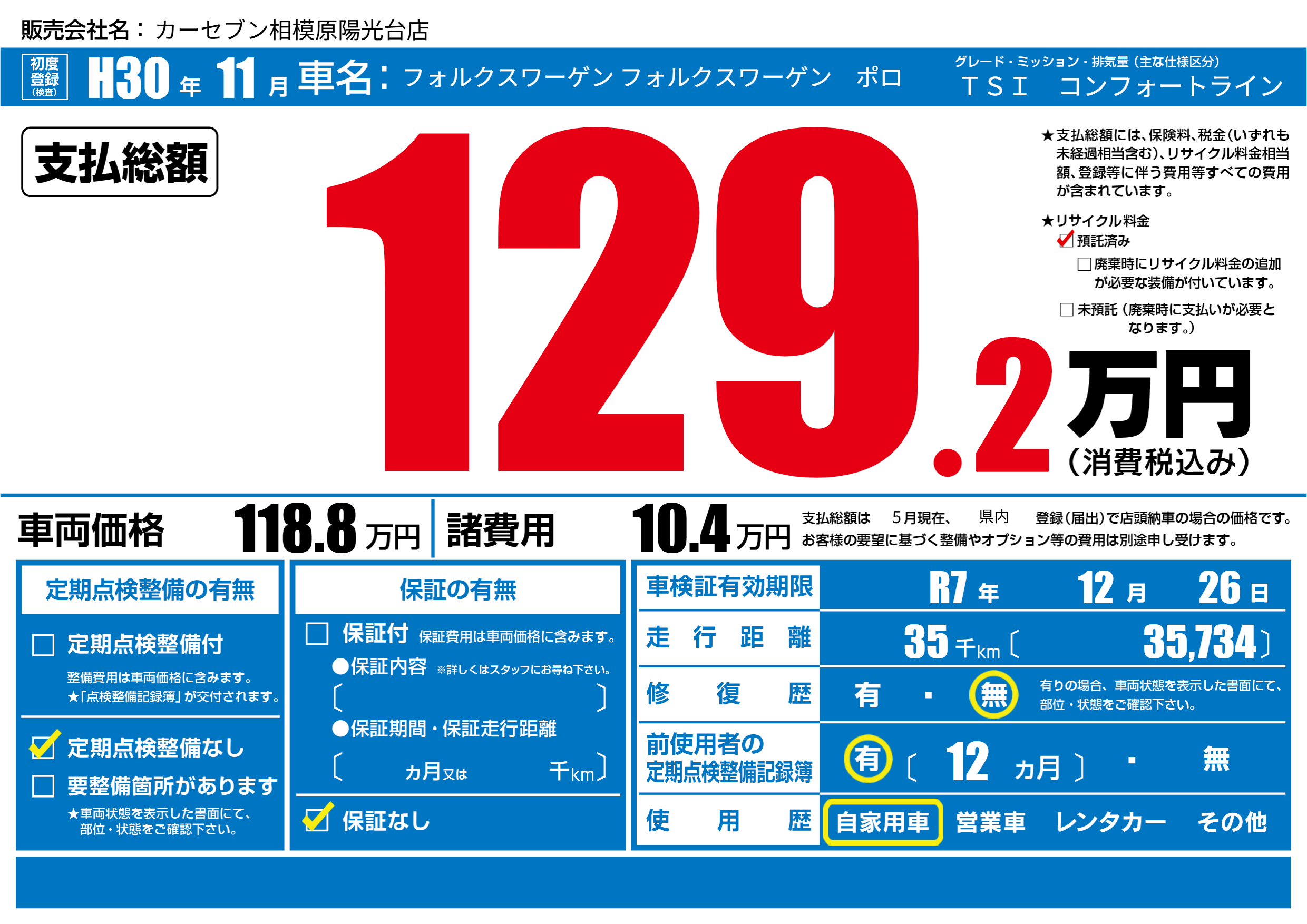 なし | 車検制限 | R7年12月26月 |