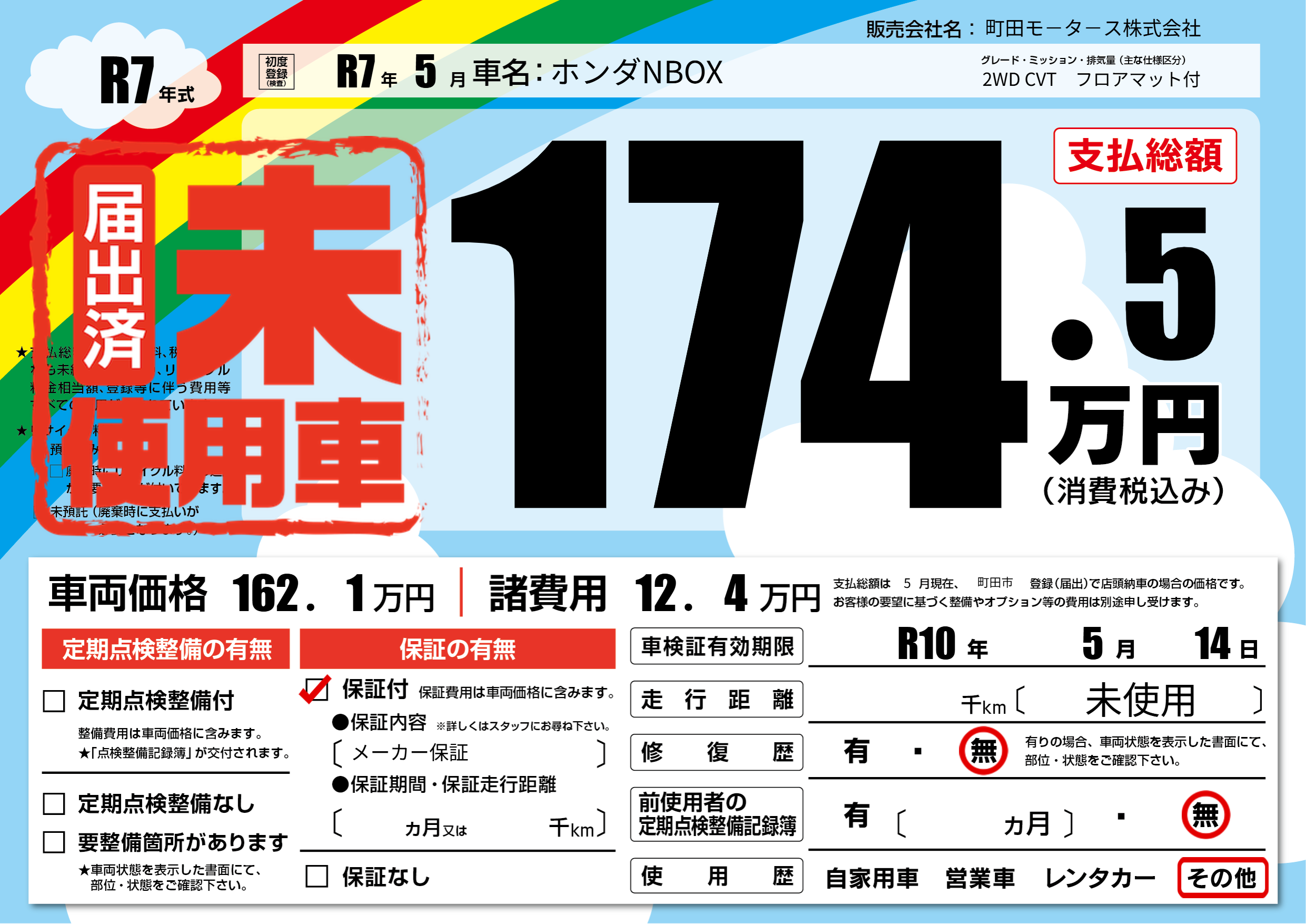 | 走行キロ | - | 初年度登録 | R7年5月 |
