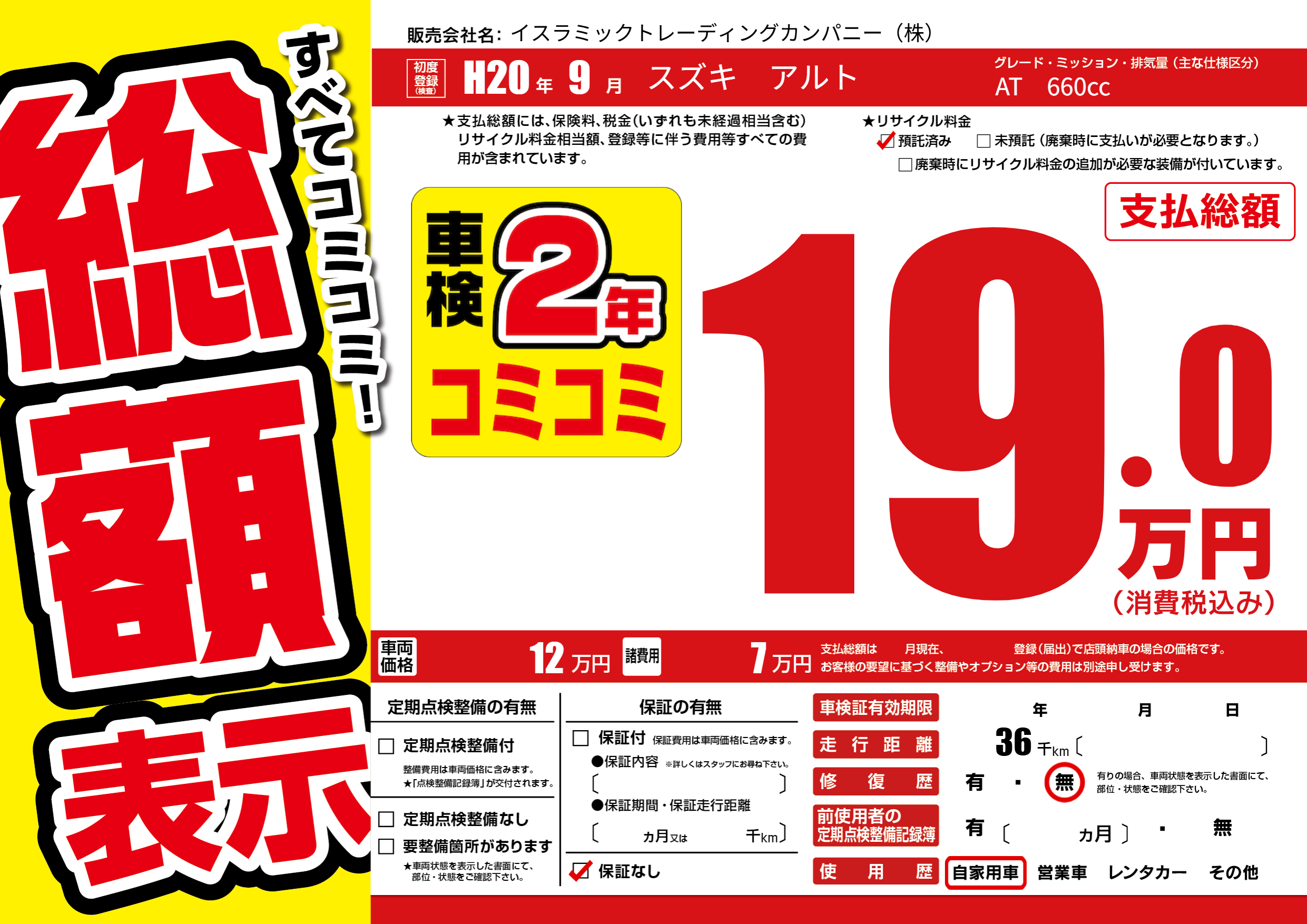| 車検制限 | - 年 - 月 - 日 | ||