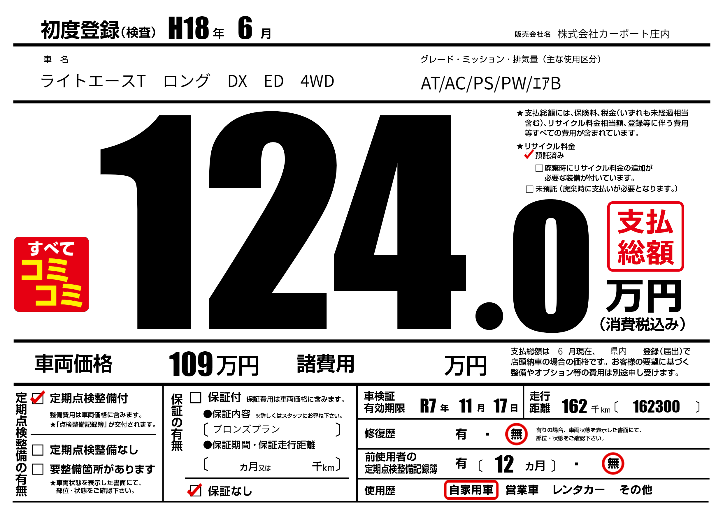 | 定期点検整備 | 定期点検整備あり | ||