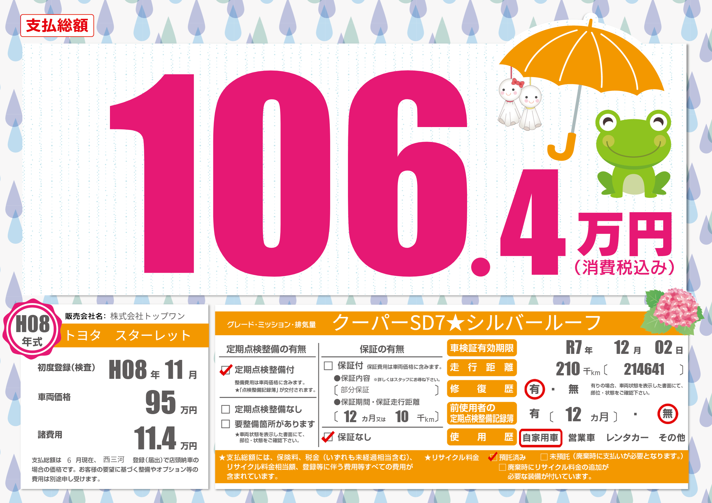 なし | 車検制限 | R7年12月02月 |