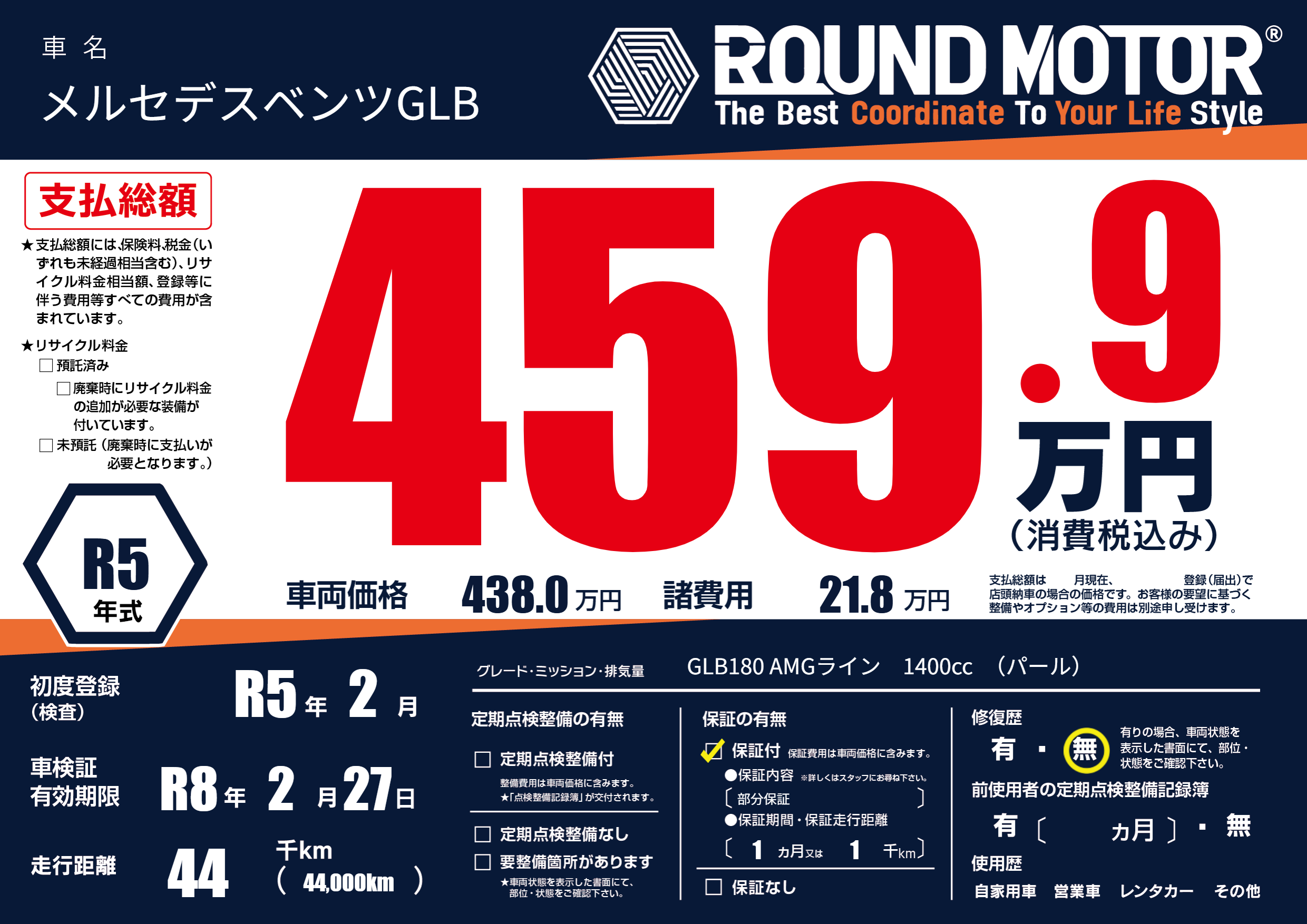 | 車名 | メルセデスベンツGLB | グレード ミッション 排気量 |