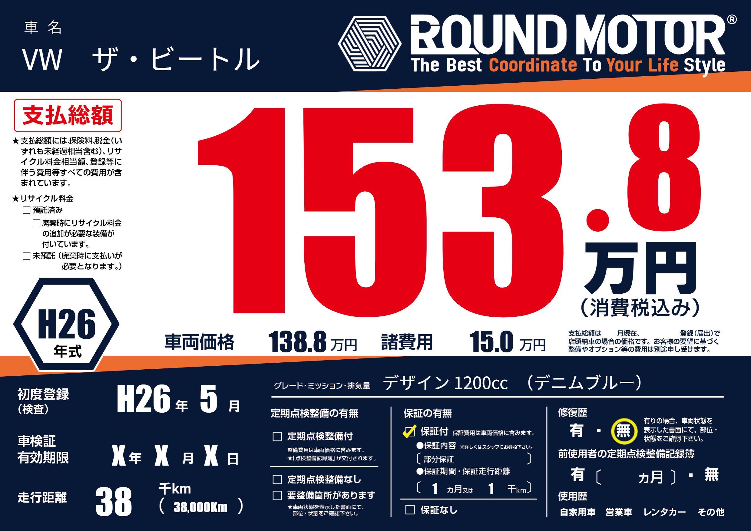 | 走行キロ | 3.8万km | 初年度登録 | H26年5月 |