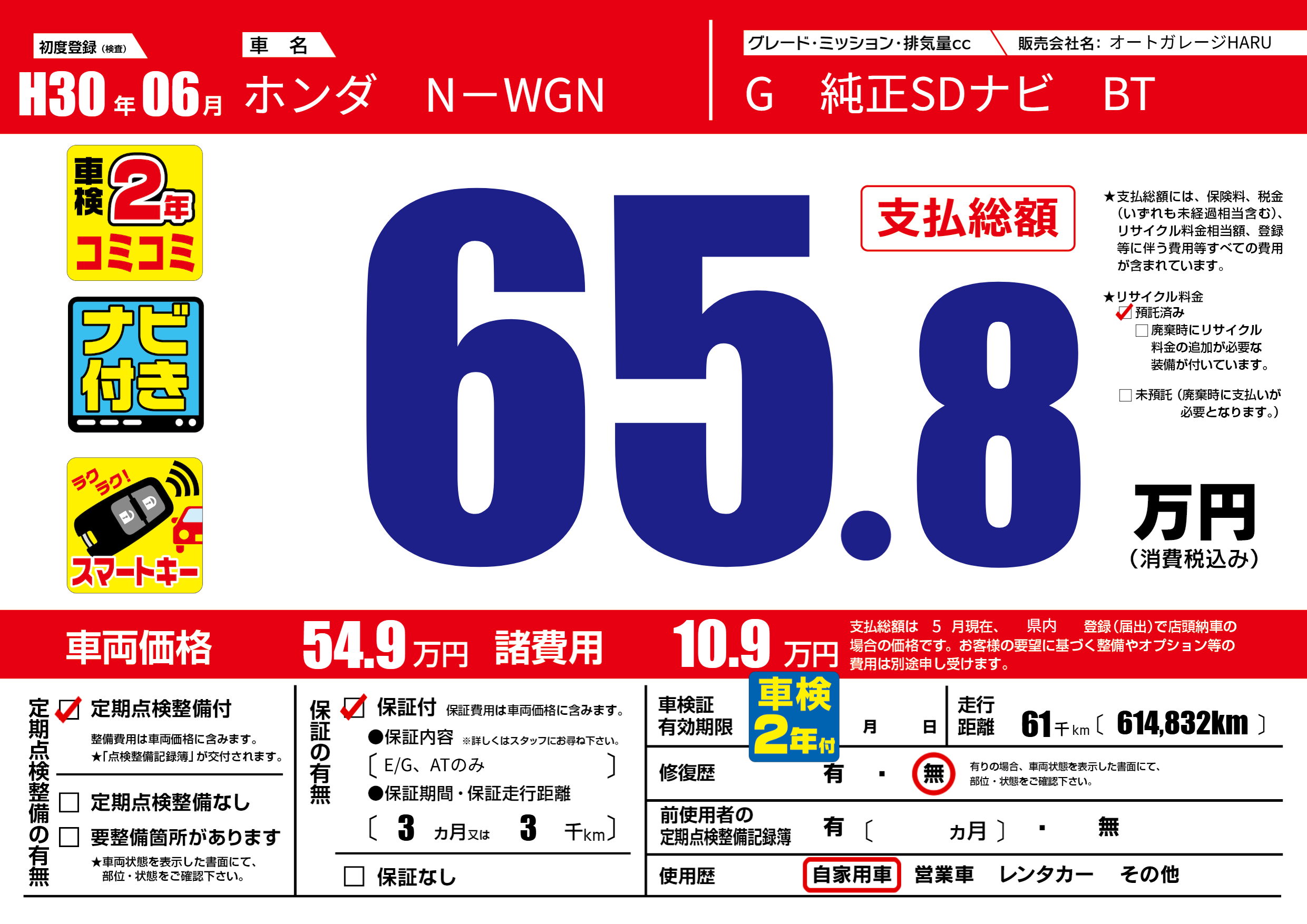 | 車名 | ホンダ N-WGN | グレード ミッション 排気量 |