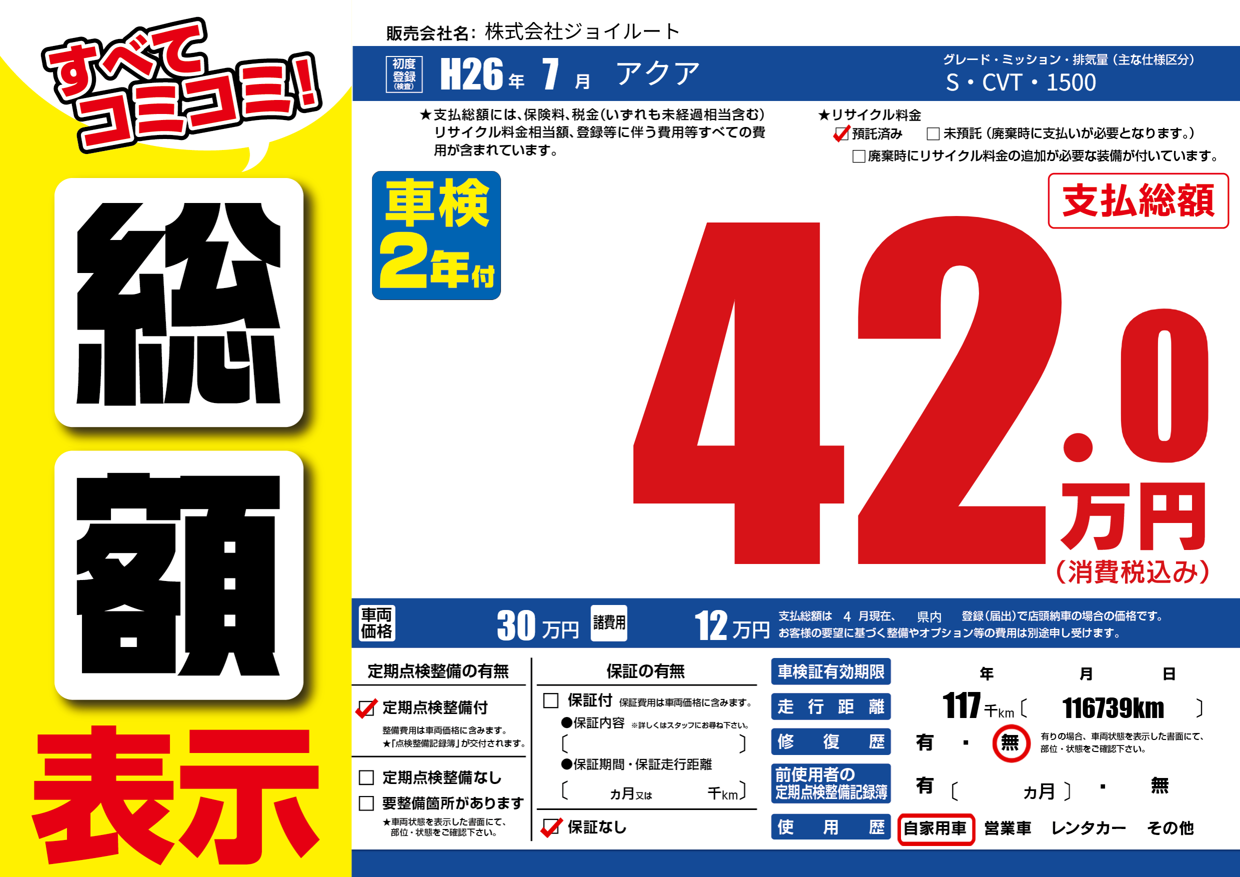 | 走行キロ | 11.7万km | 初年度登録 | H26年7月 |