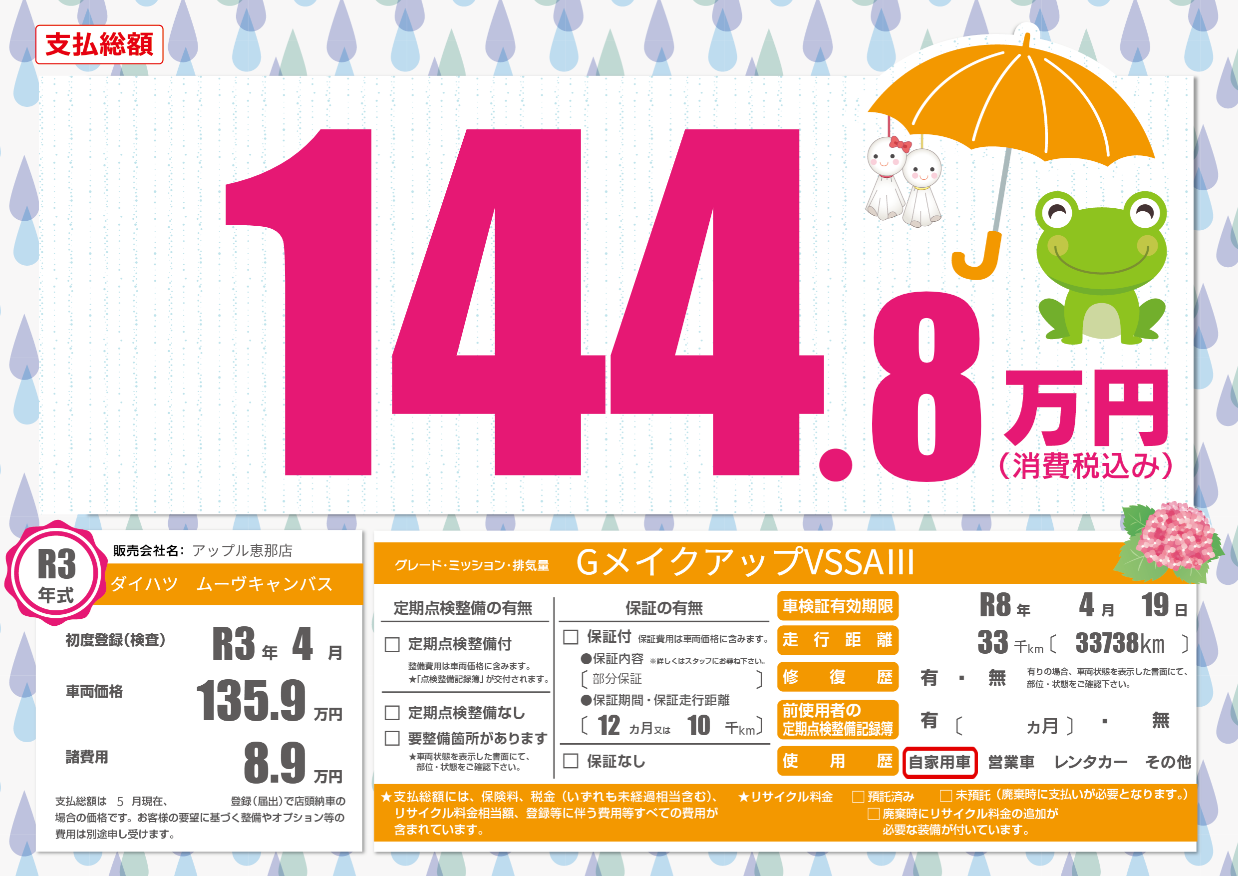 なし | 車検制限 | R8年4月19月 |