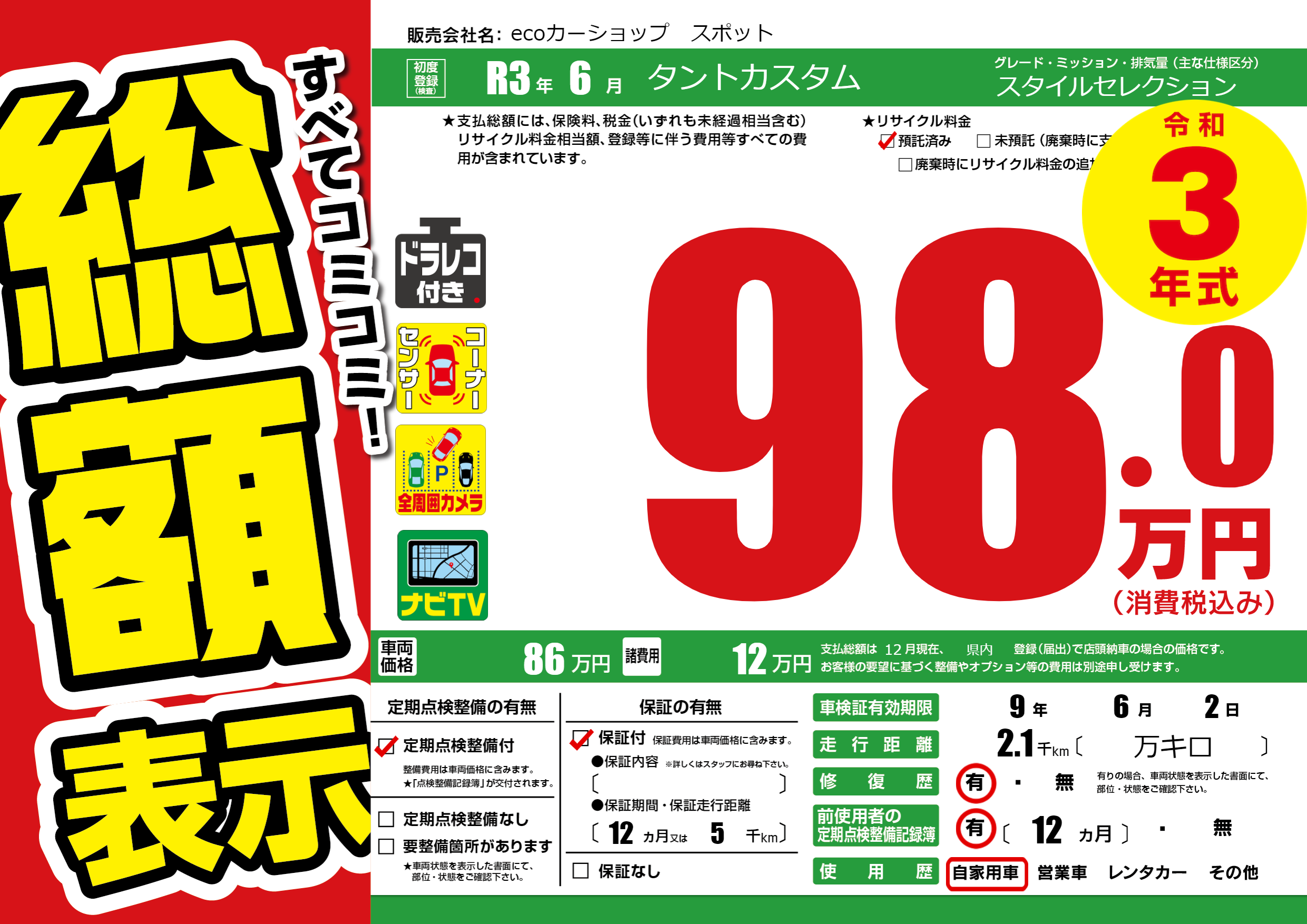 | 車名 | タントカスタム | グレード ミッション 排気量 |
