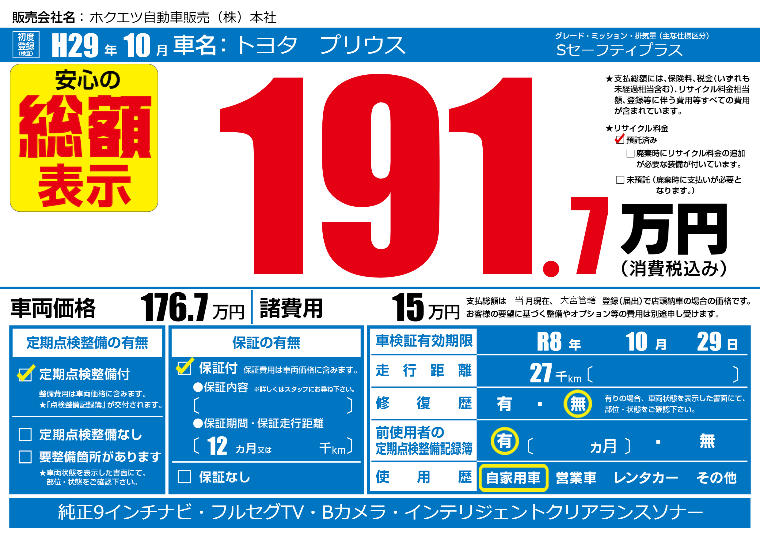 | 定期点検整備 | 定期点検整備あり | ||