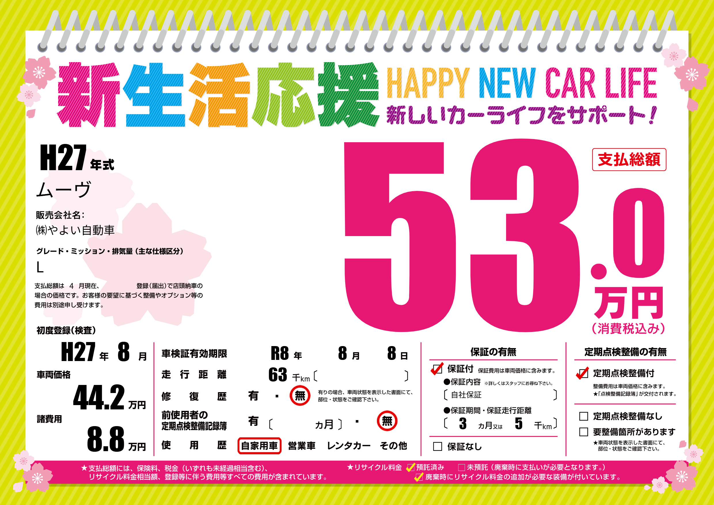 | 車名 | ムーヴ | グレード ミッション 排気量 |