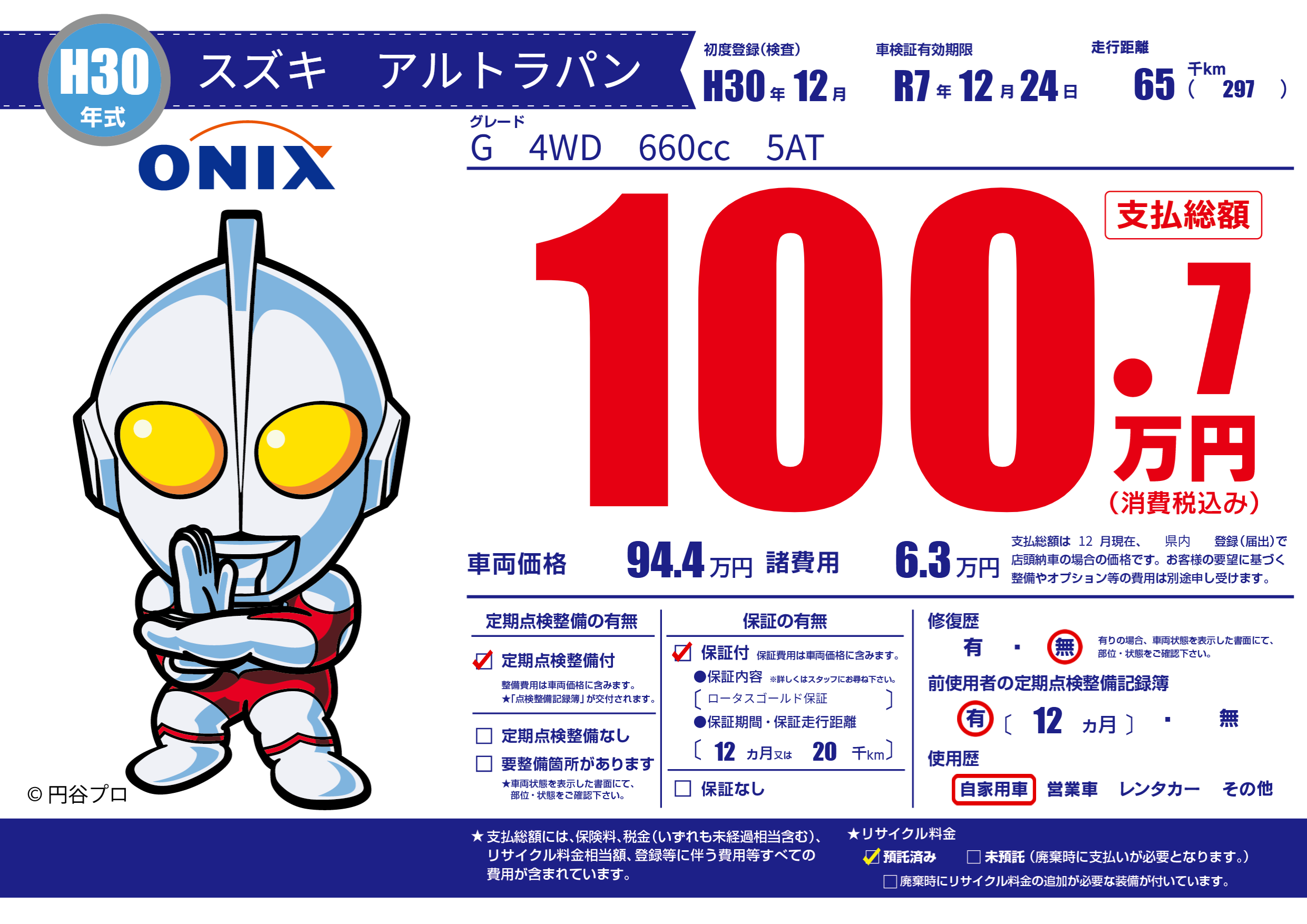 | 車名 | スズキ アルトラパン | グレード ミッション 排気量 |
