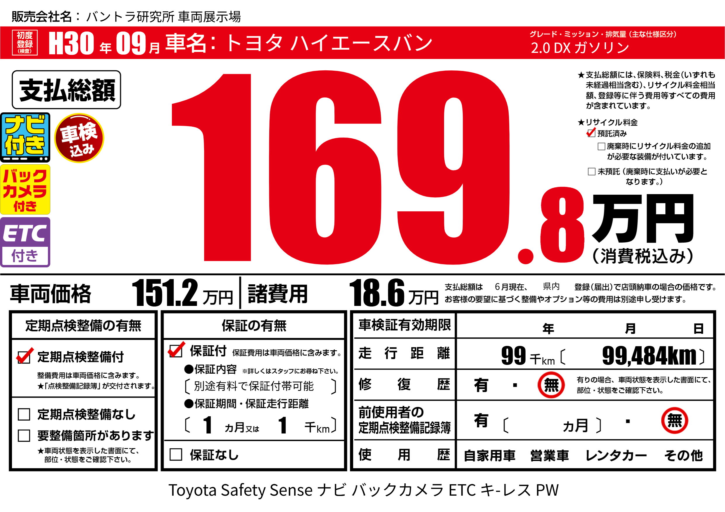 | 走行キロ | 9.9万km | 初年度登録 | H30年09月 |