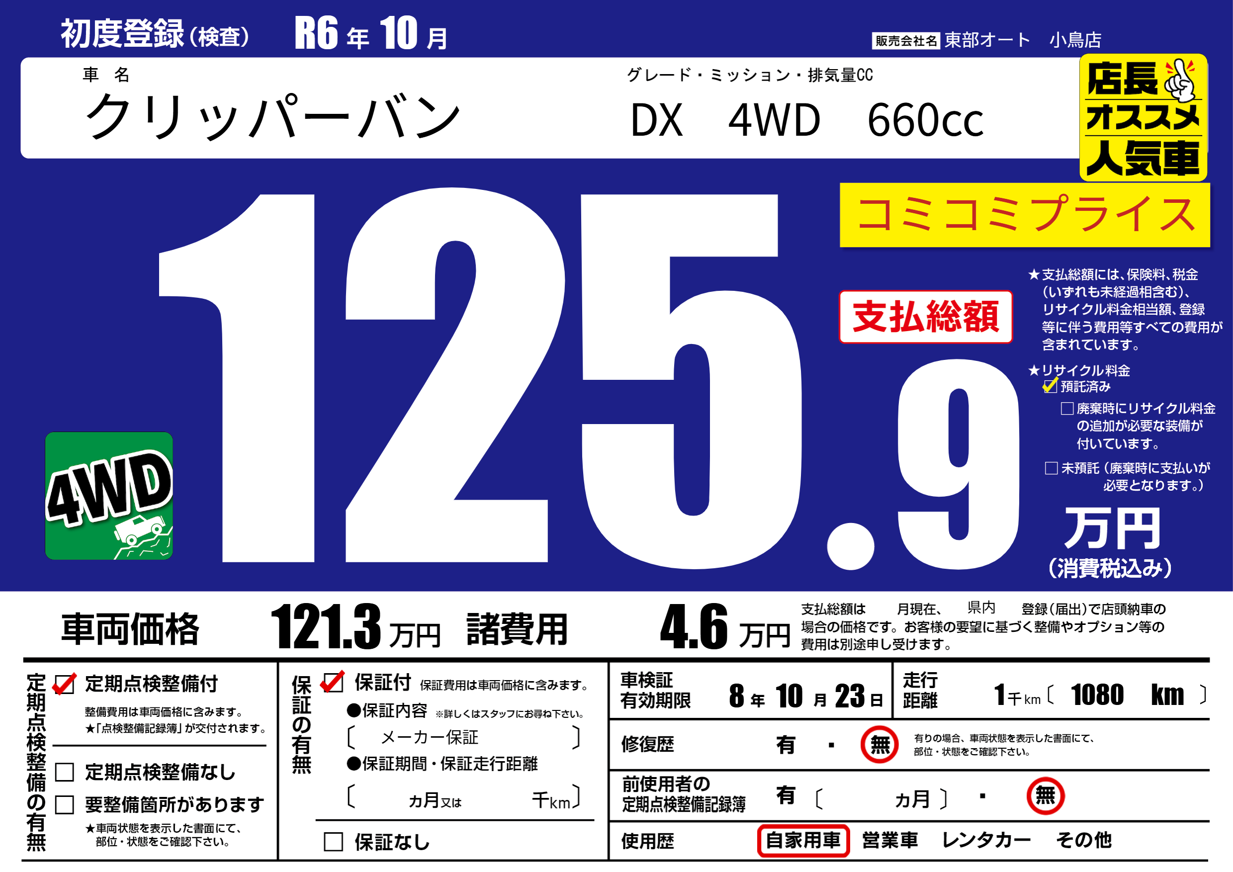 保証付き 保証内容( メーカー保証) ---ヶ月または()千kmまで |