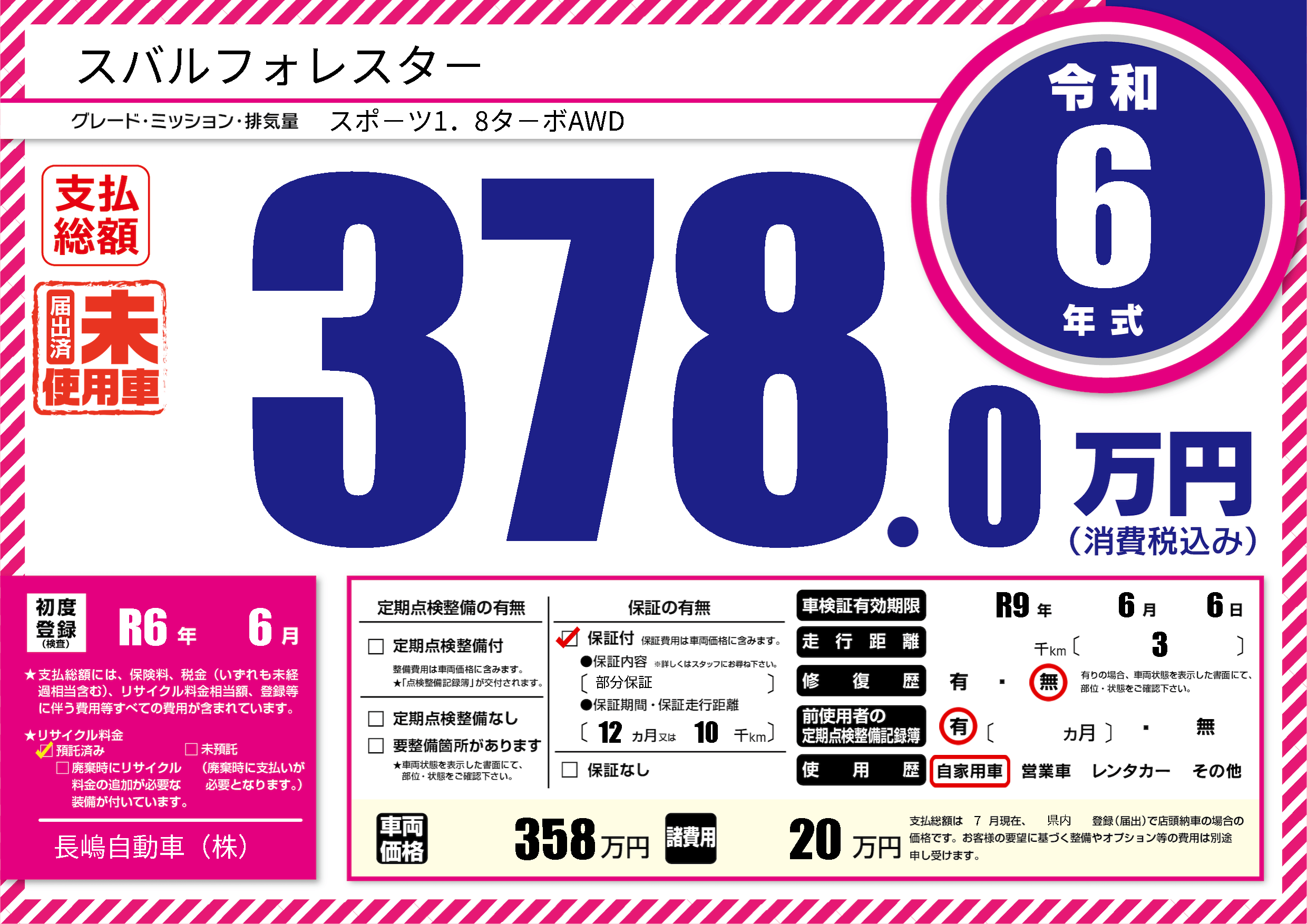 | 走行キロ | - | 初年度登録 | R6年6月 |