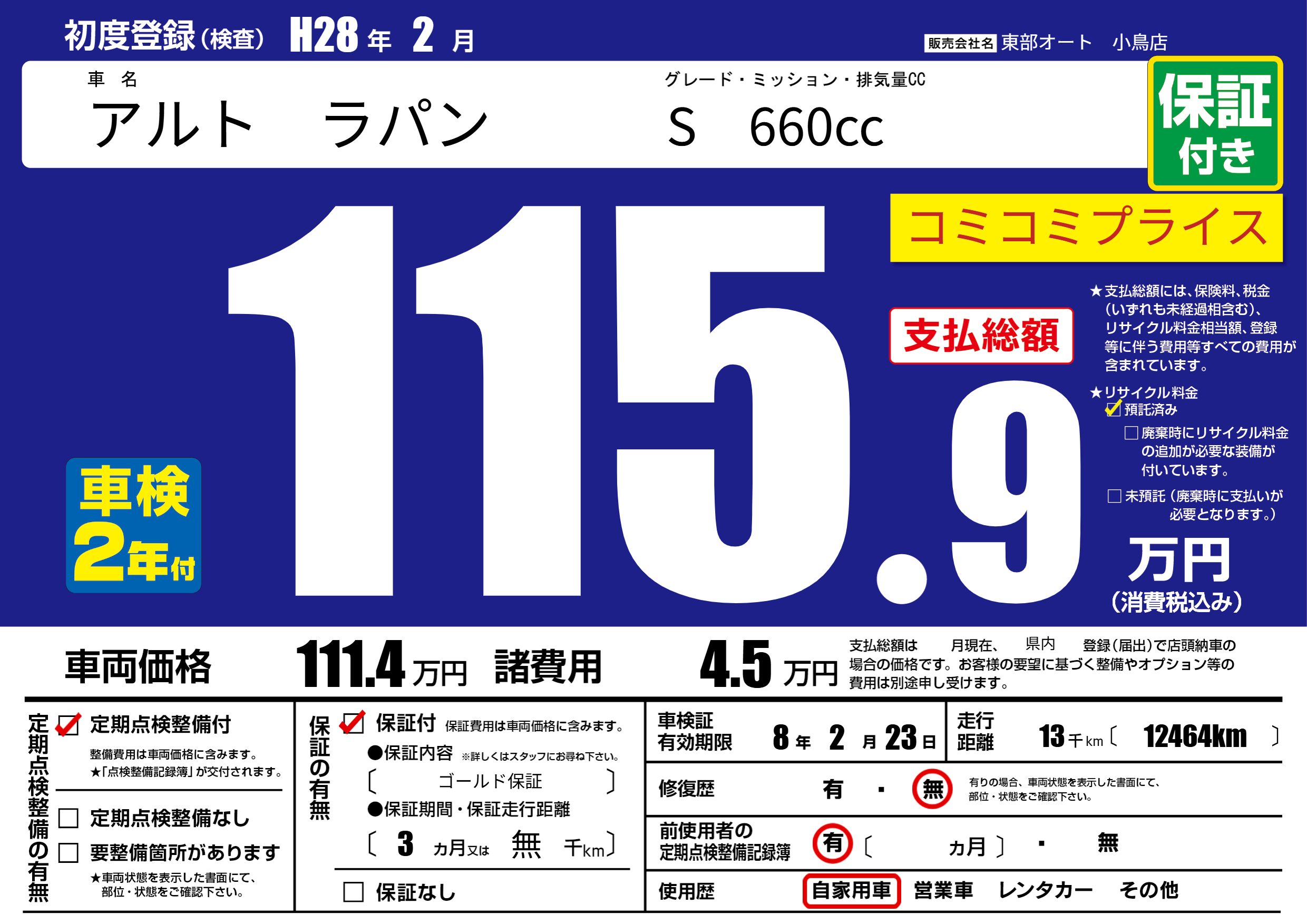 | 定期点検整備 | 定期点検整備あり | ||