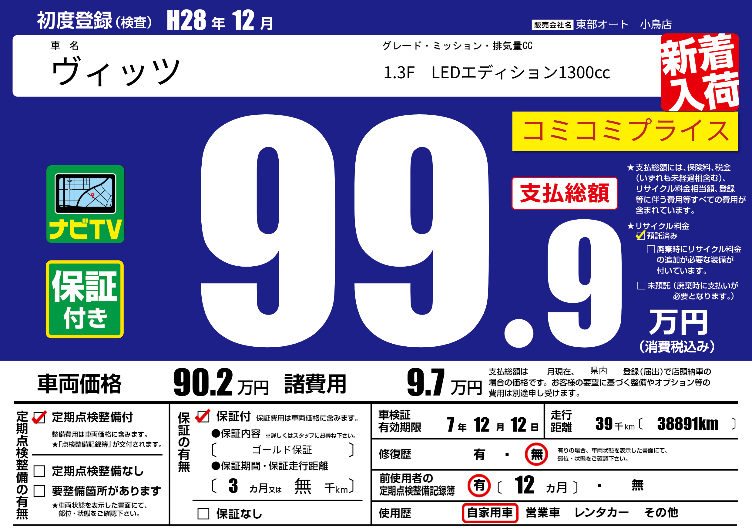 保証付き 保証内容( ゴールド保証) 3ヶ月または(無)千kmまで |