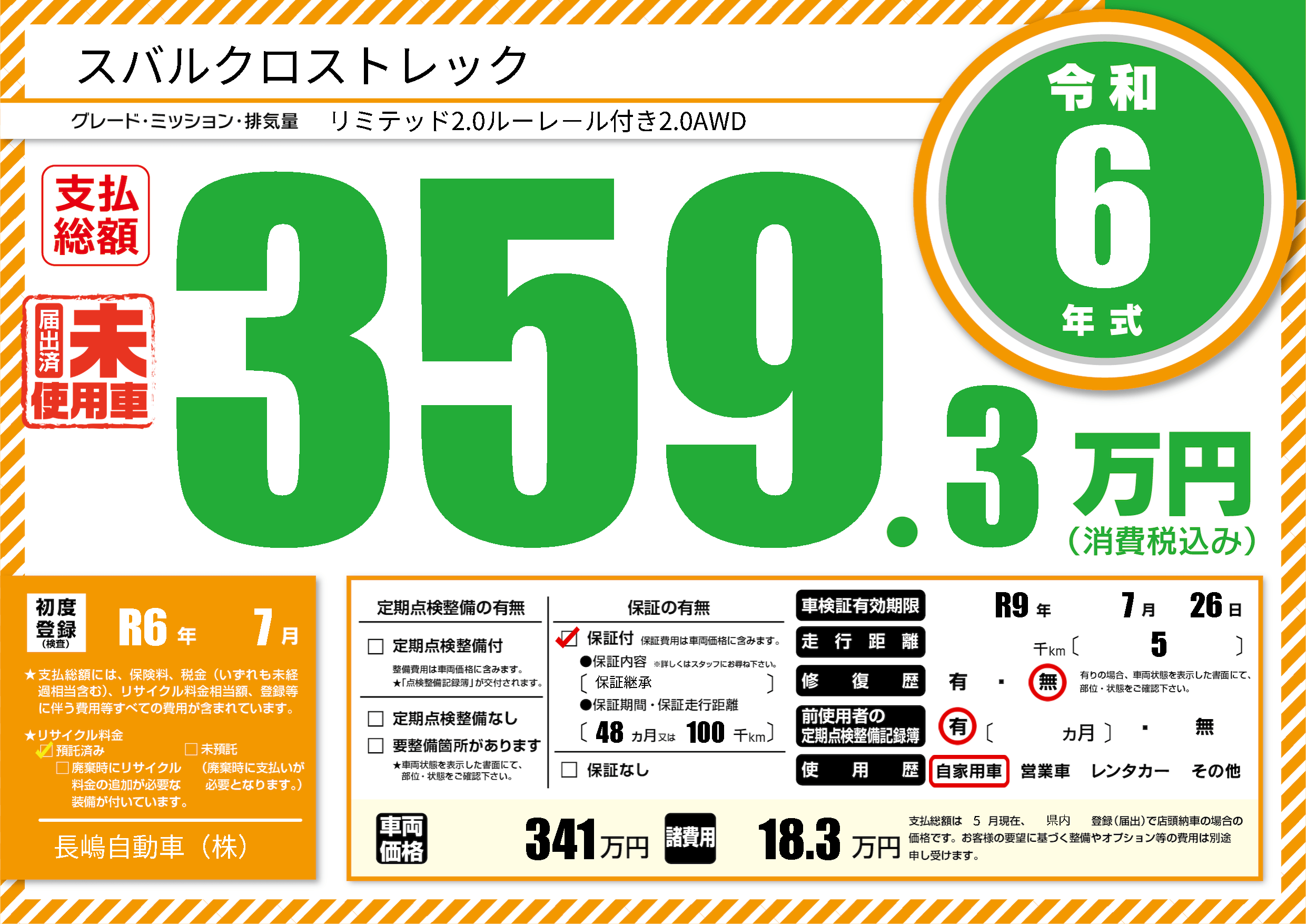| 車名 | スバルクロストレック | グレード ミッション 排気量 |