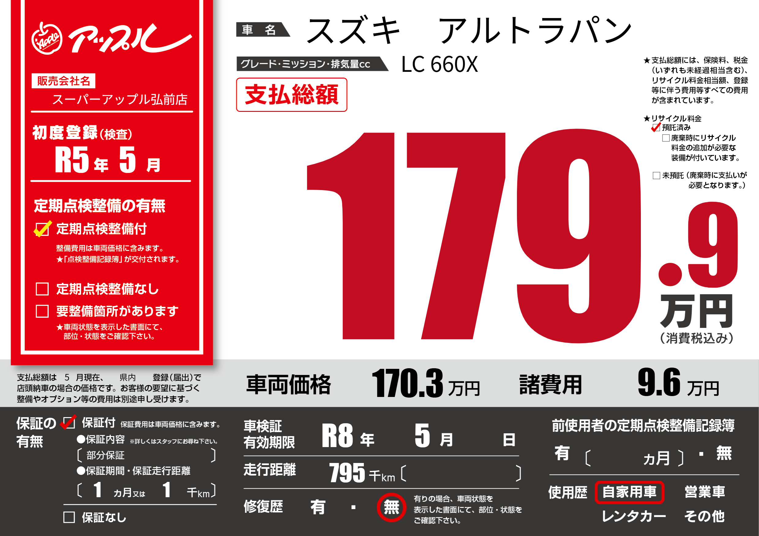 | 走行キロ | 79.5万km | 初年度登録 | R5年5月 |