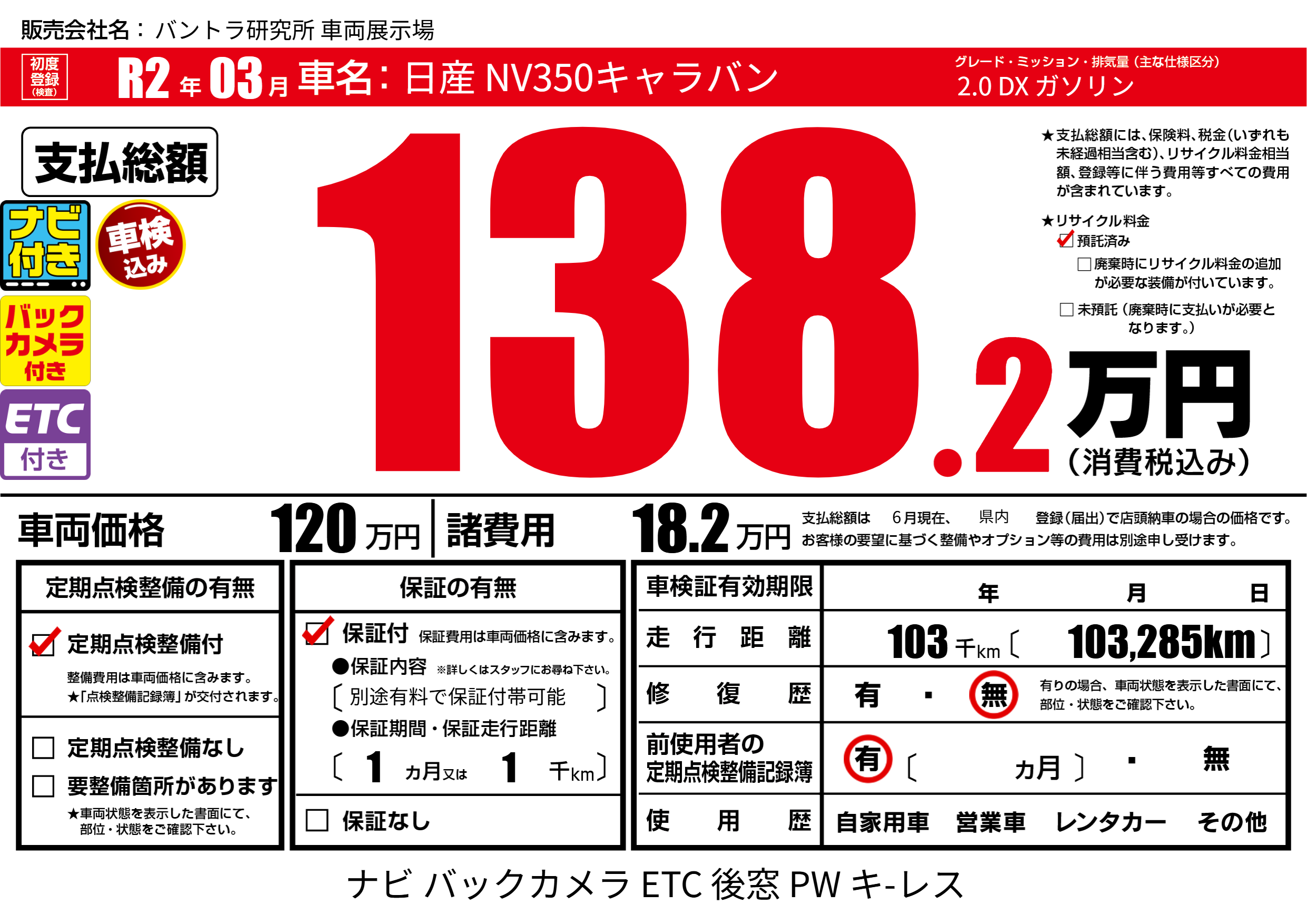 | 定期点検整備 | 定期点検整備あり | ||