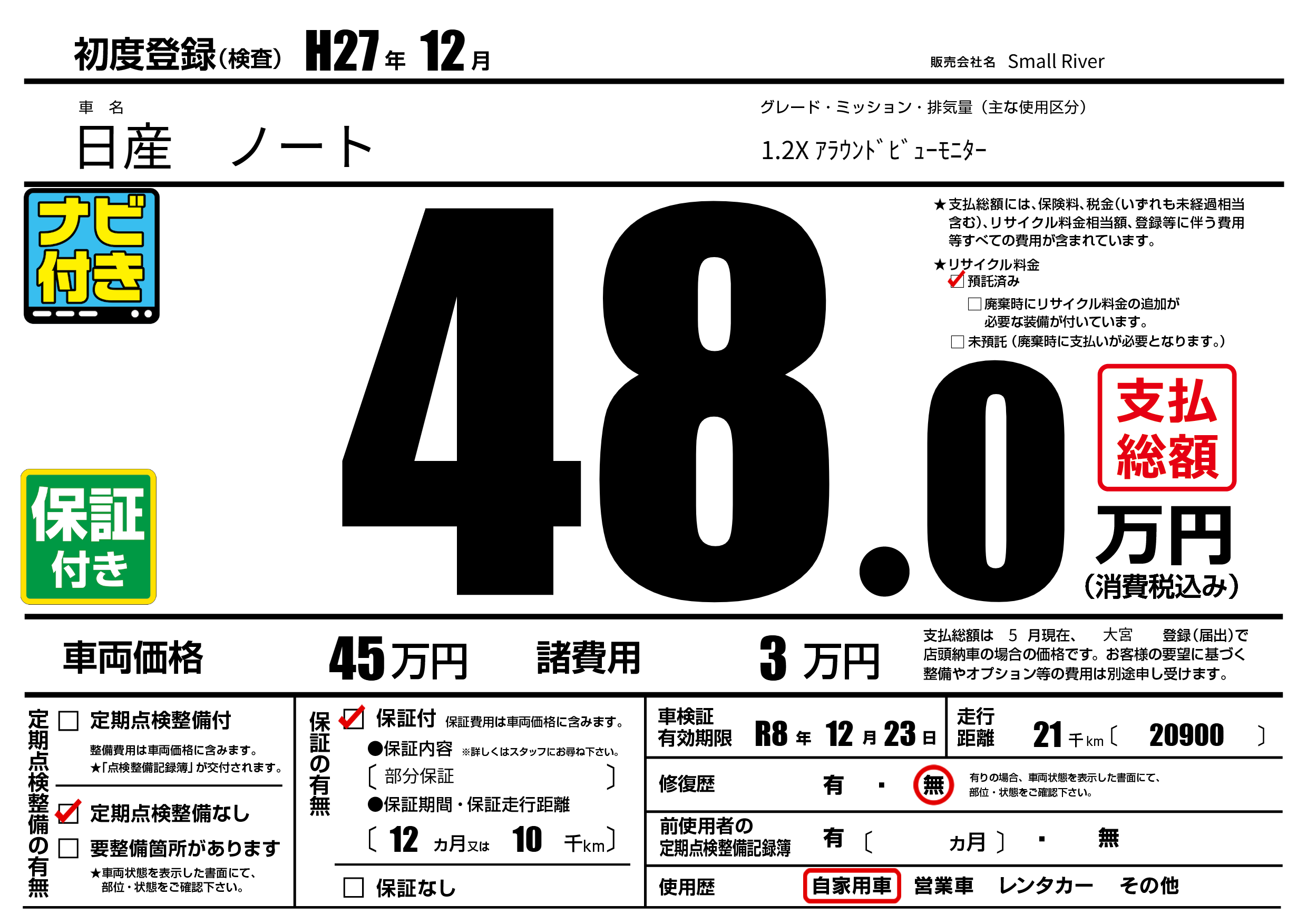 | 初年度登録 | H27年12月 | ||