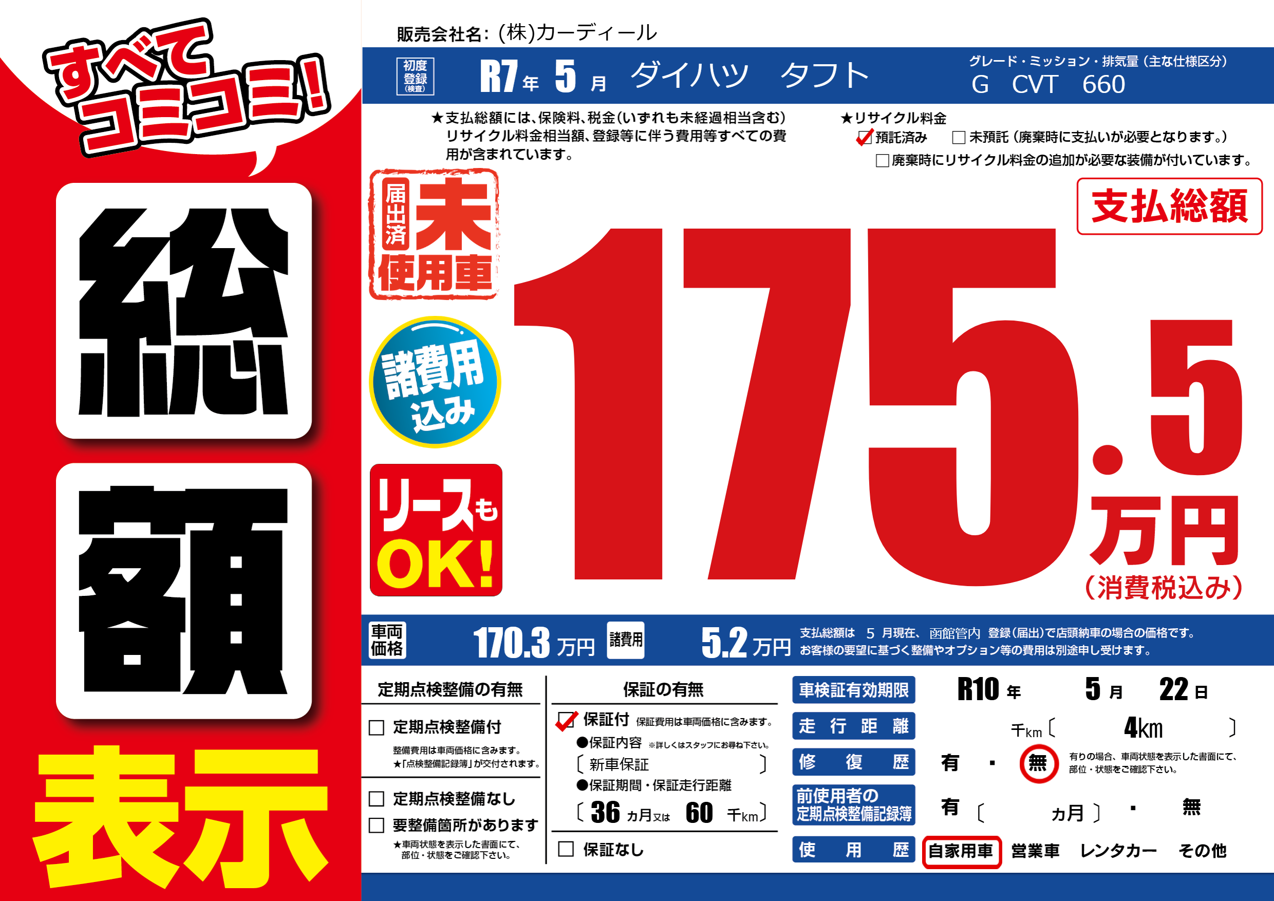 | 走行キロ | - | 初年度登録 | R7年5月 |
