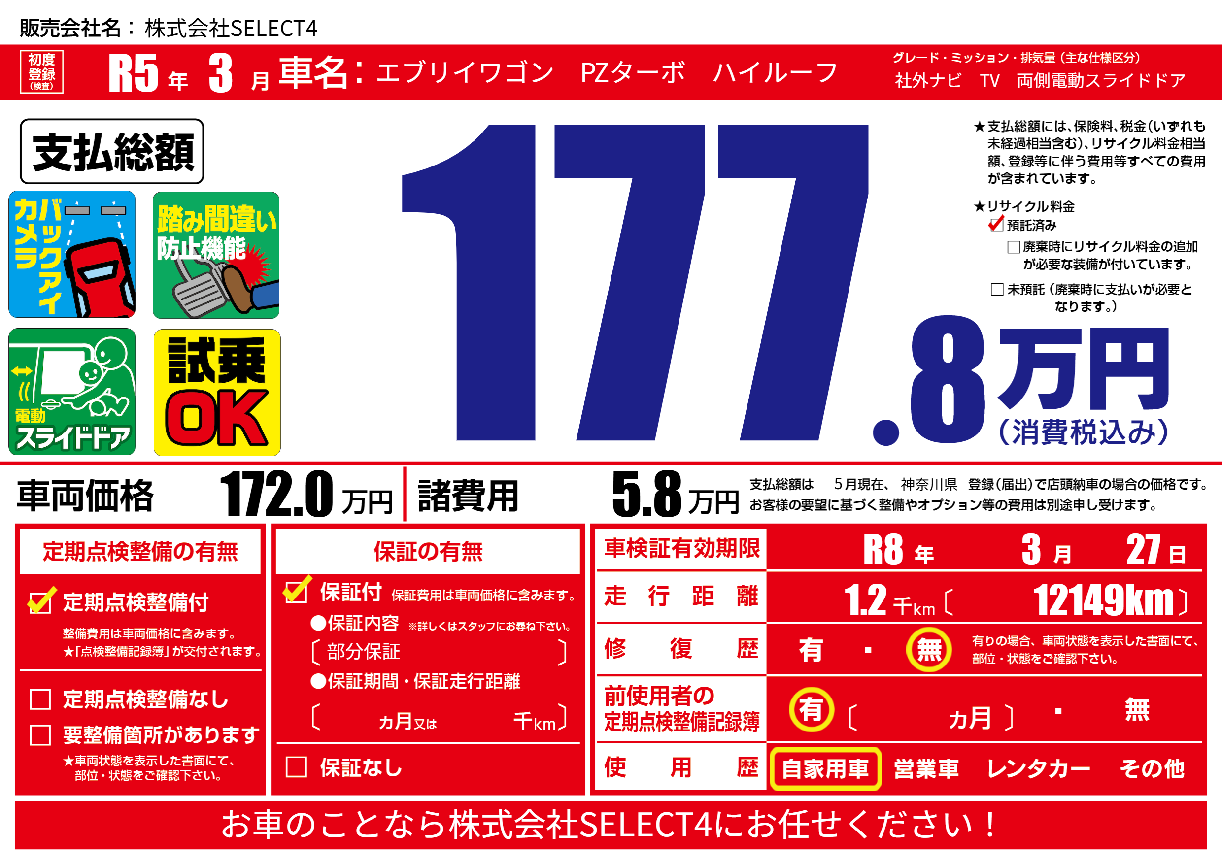 | 走行キロ | 0.1万km | 初年度登録 | R5年3月 |
