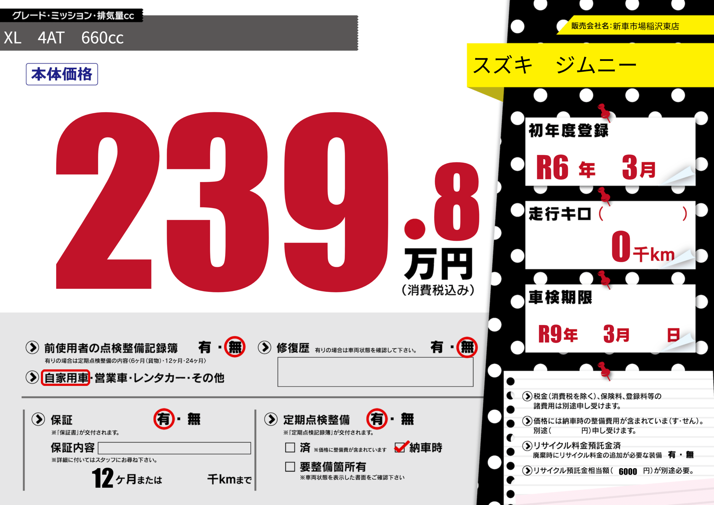 | 走行キロ | - | 初年度登録 | R6年3月 |