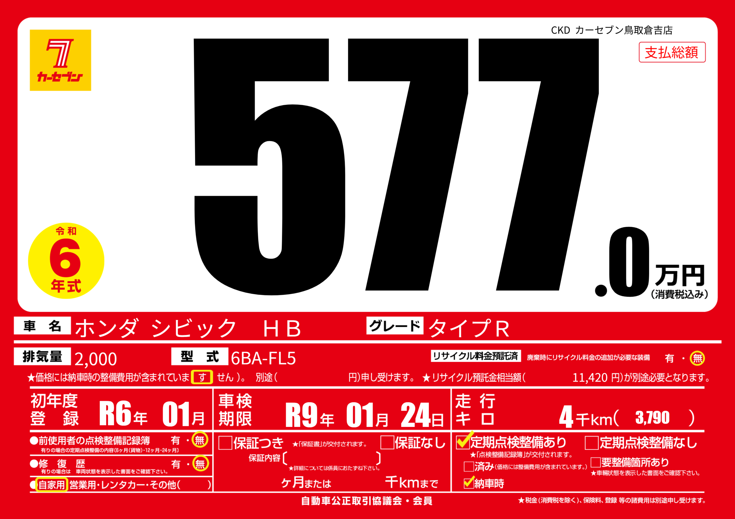 | 車検制限 | R9年 01月 24日 | ||