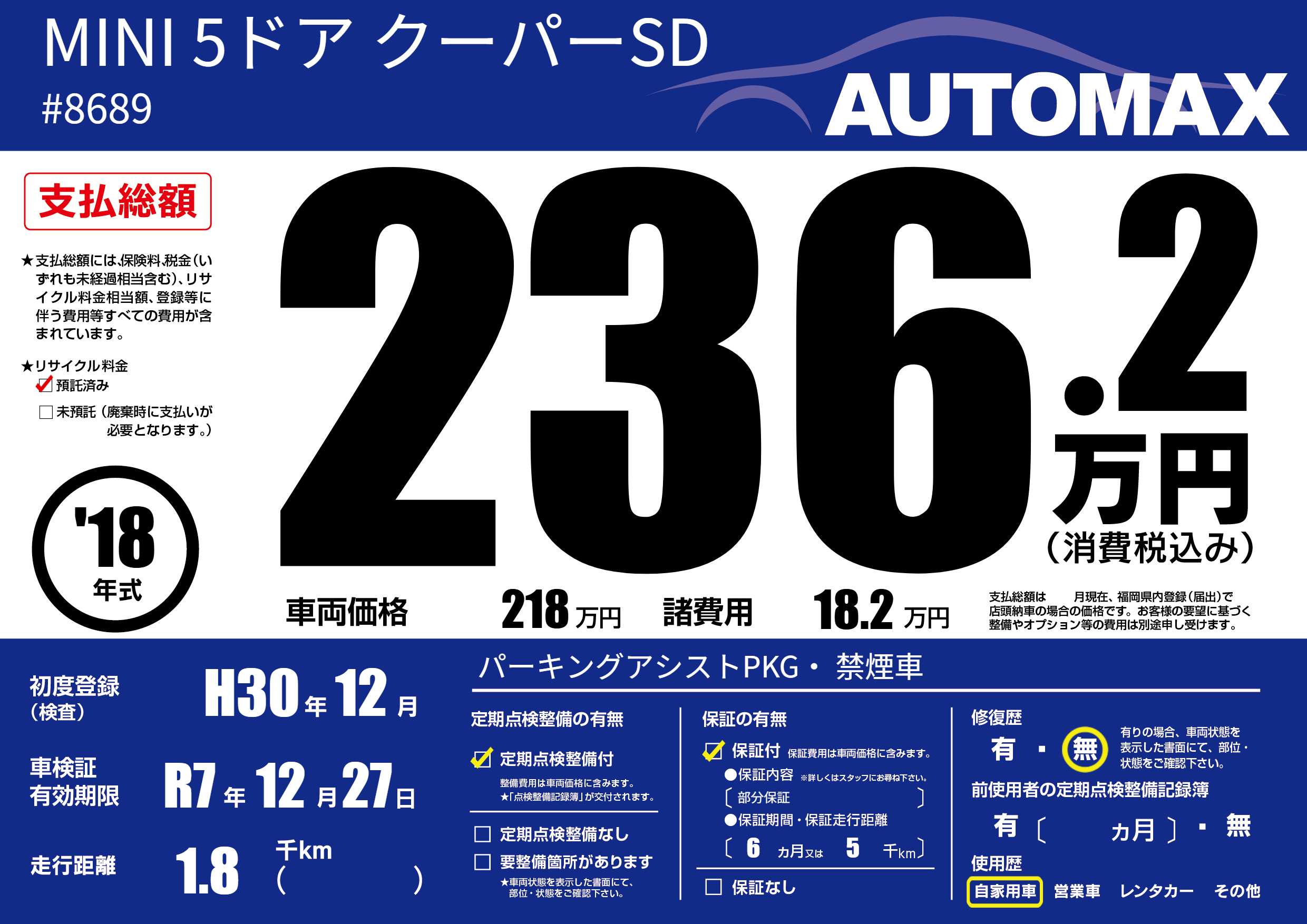 | 初年度登録 | H30年12月 | ||